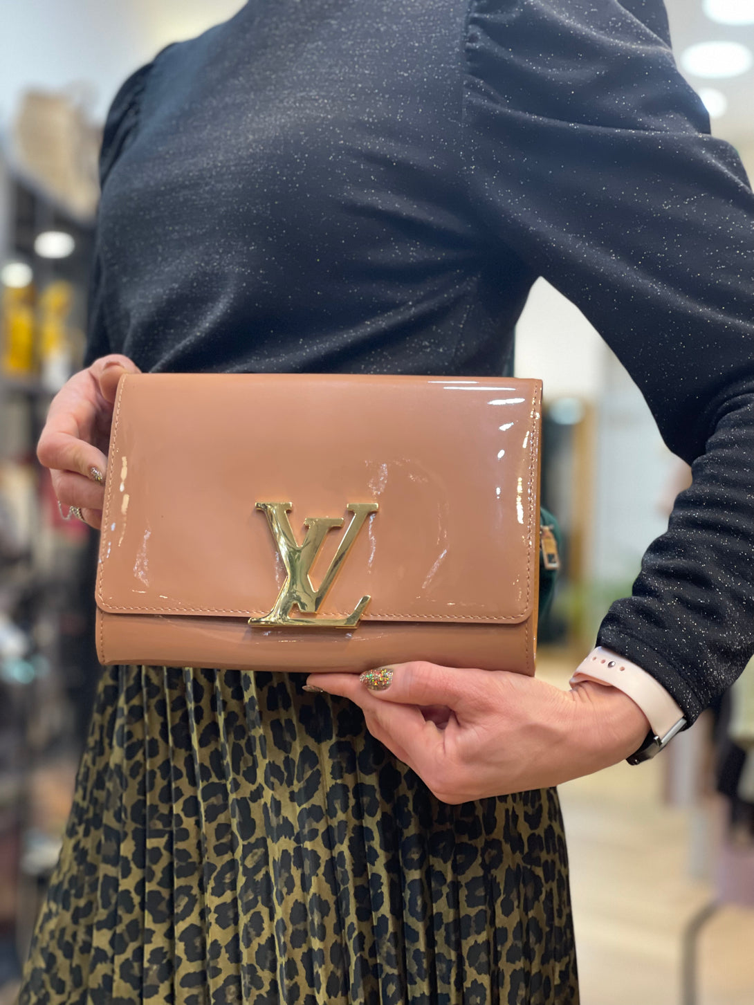 Louis Vuitton Nude Patent Leather Logo Clutch