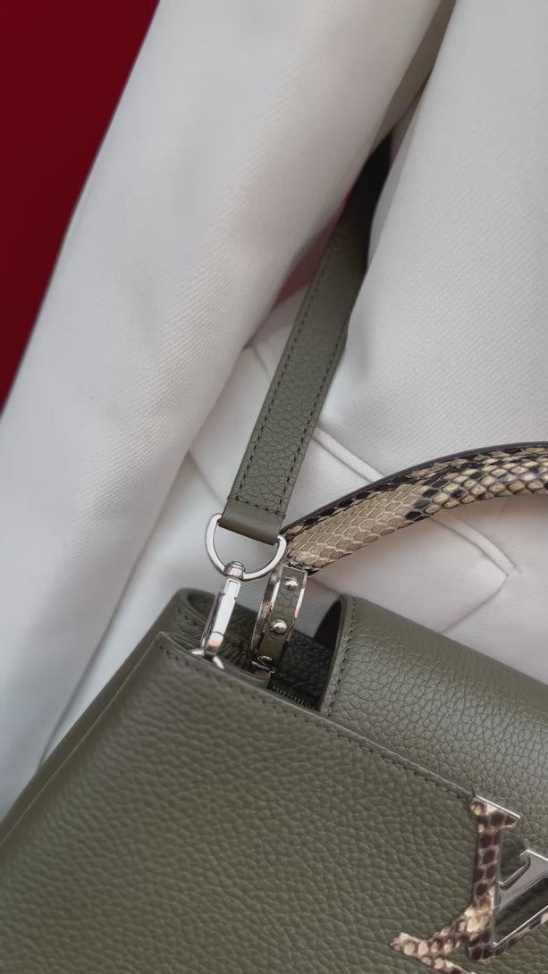 Louis Vuitton Olive Leather Capucines Tote - Snakeskin Handle