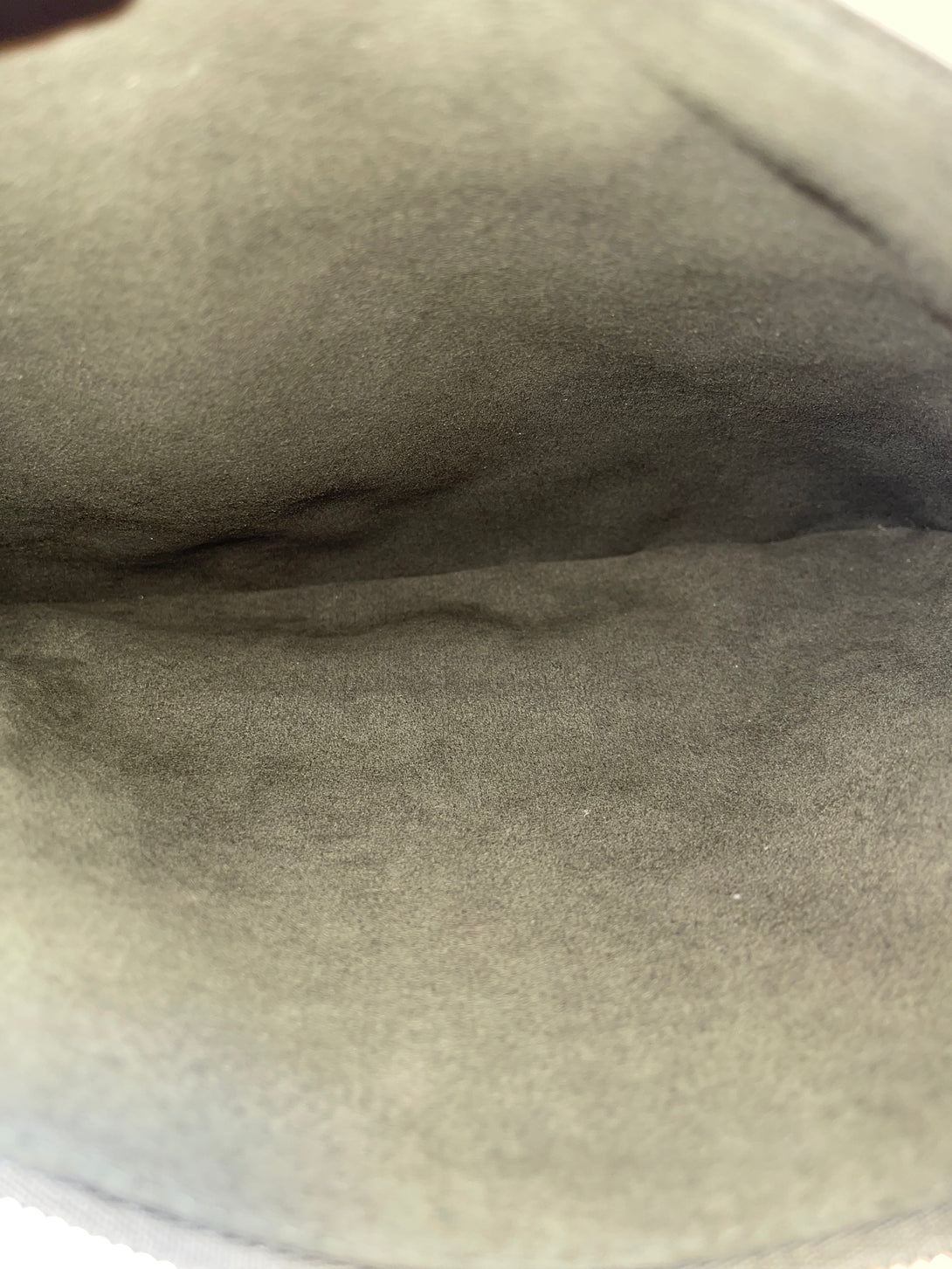 Good: Items show more prominent wear such as noticeable discoloration, stains and snags to fabric. May have worn corners and handles, tarnishing to hardware and creasing to leather. Pen or make up marks may be visible in the interior of the bag.