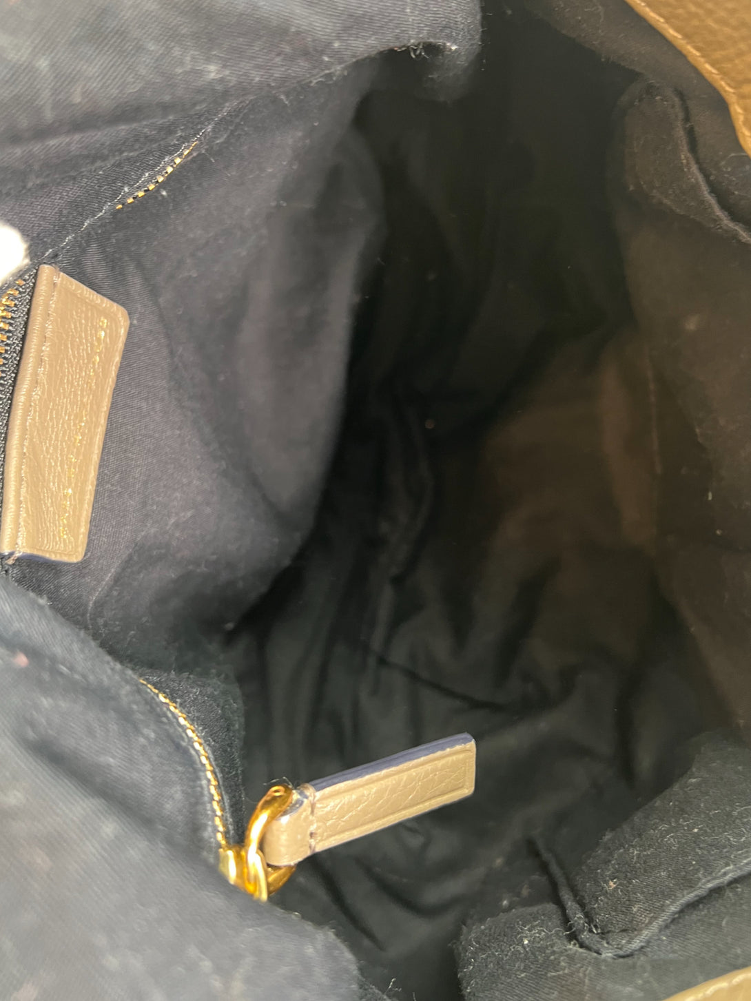 Good: Items show more prominent wear such as noticeable discoloration, stains and snags to fabric. May have worn corners and handles, tarnishing to hardware and creasing to leather. Pen or make up marks may be visible in the interior of the bag.