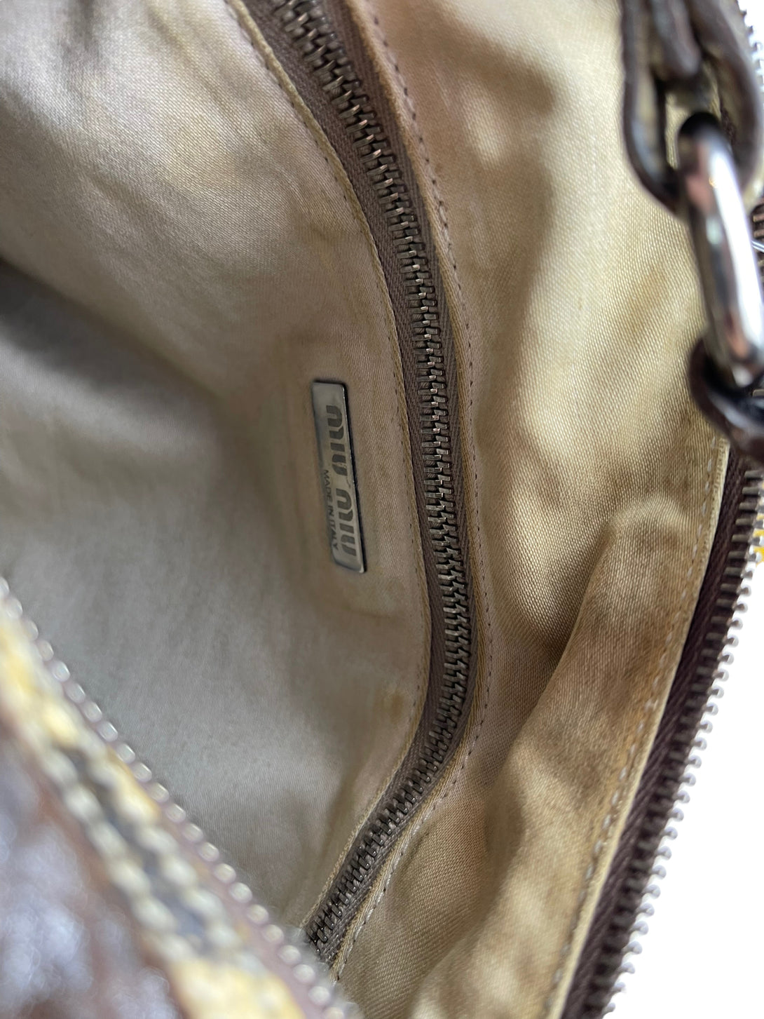 MiuMiu Vintage Gold Distress Effect Leather MiuMiu Hobo