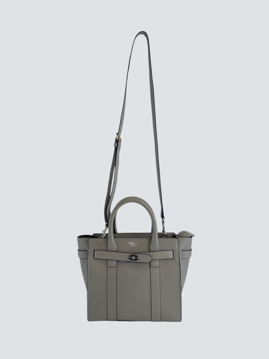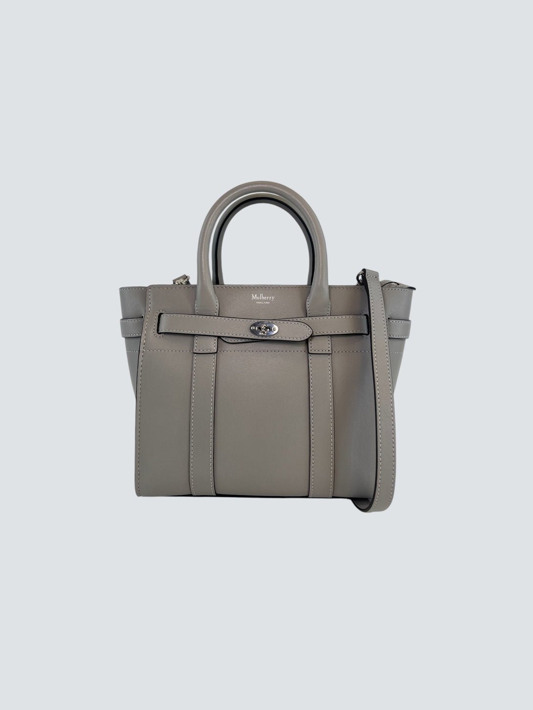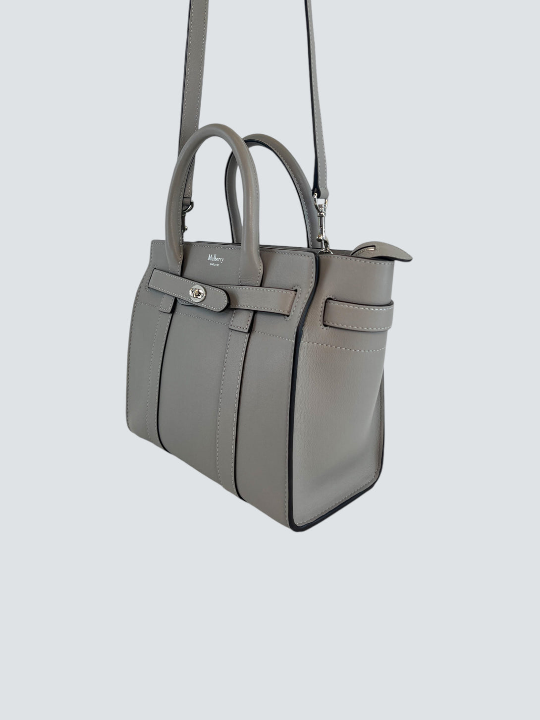 Mulberry Pale Grey Leather Mini Zipped Bayswater