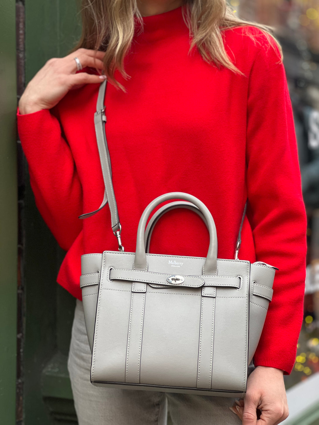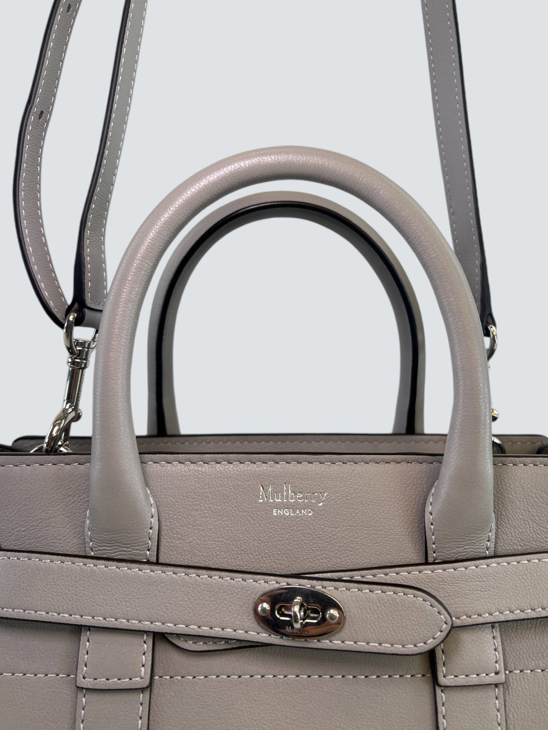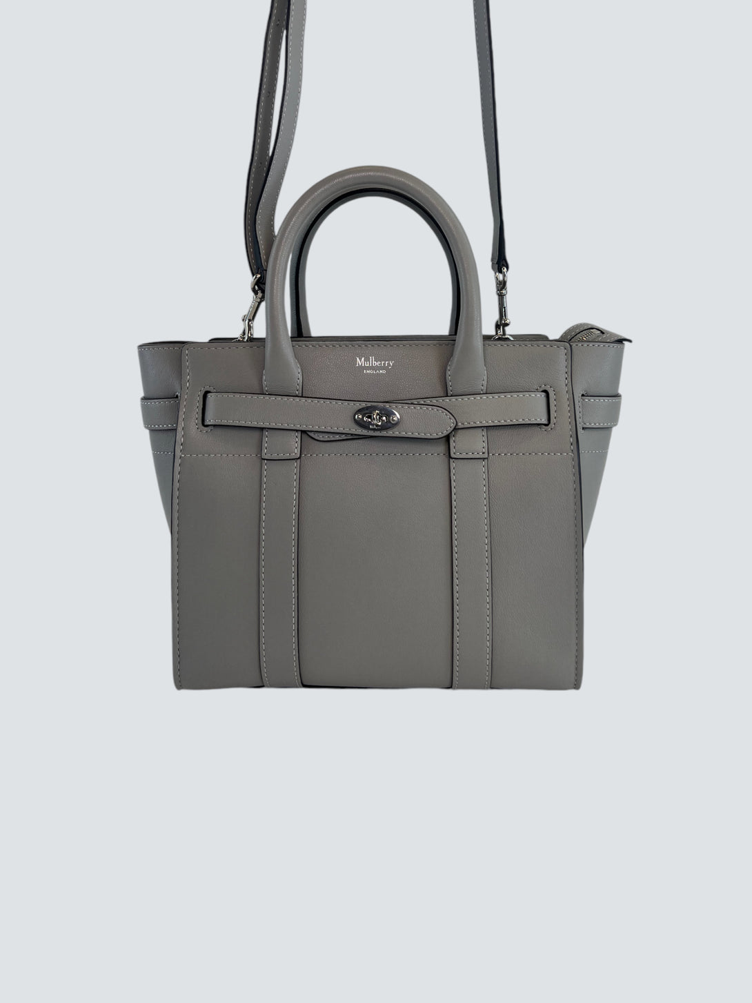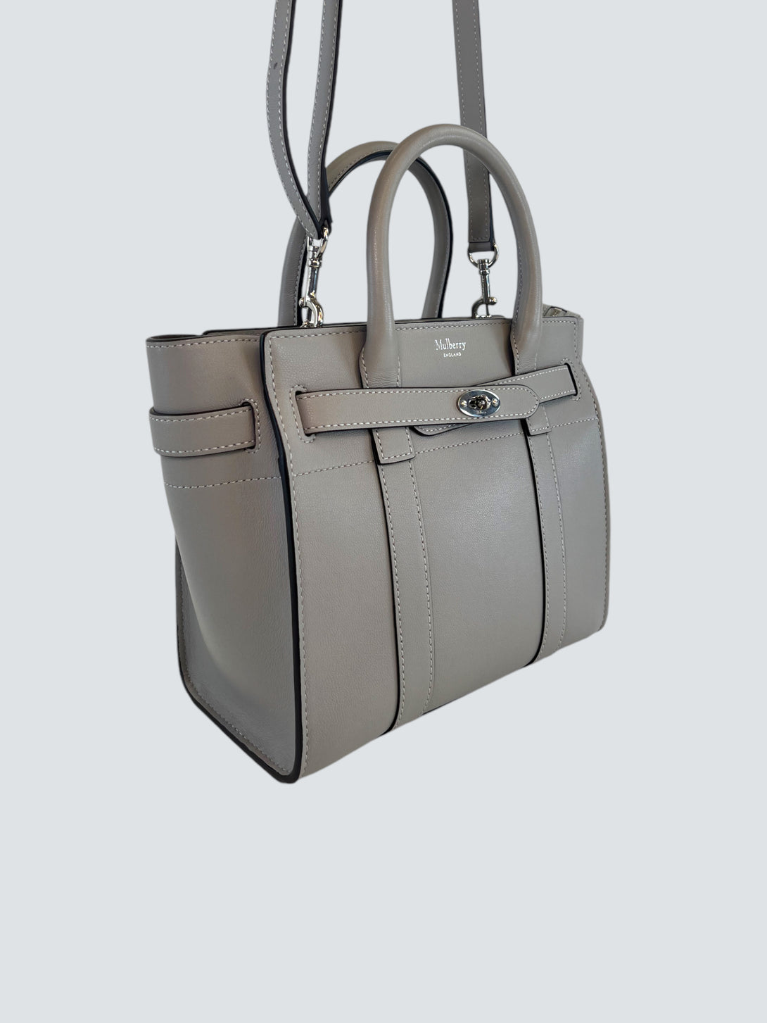 Mulberry Pale Grey Leather Mini Zipped Bayswater