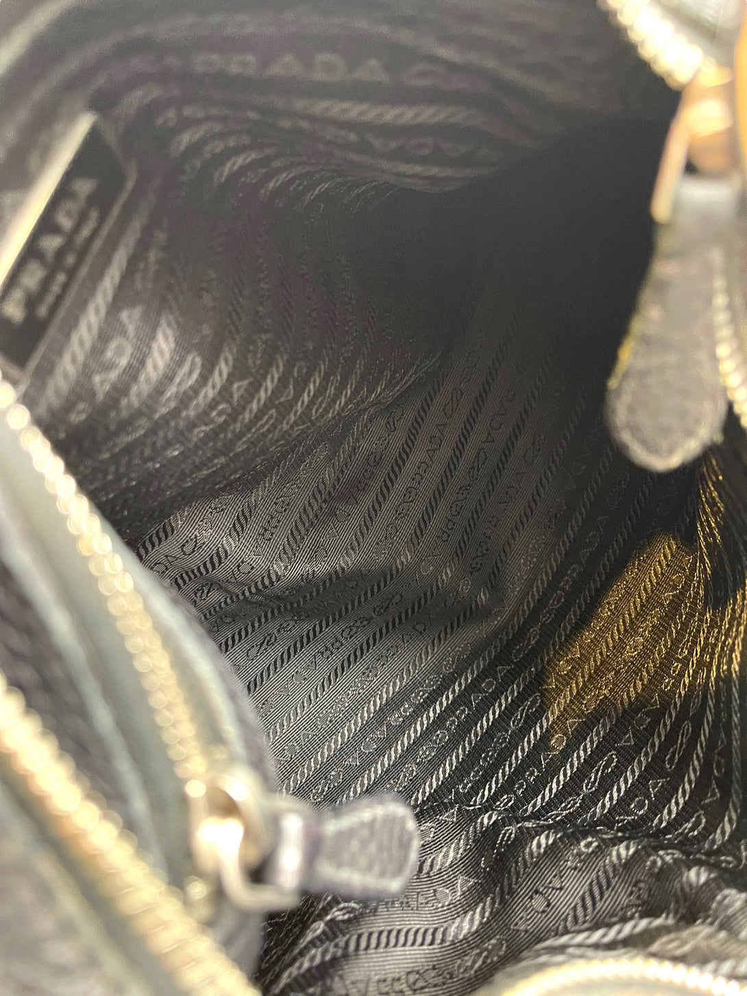 Good: Items show more prominent wear such as noticeable discoloration, stains and snags to fabric. May have worn corners and handles, tarnishing to hardware and creasing to leather. Pen or make up marks may be visible in the interior of the bag.