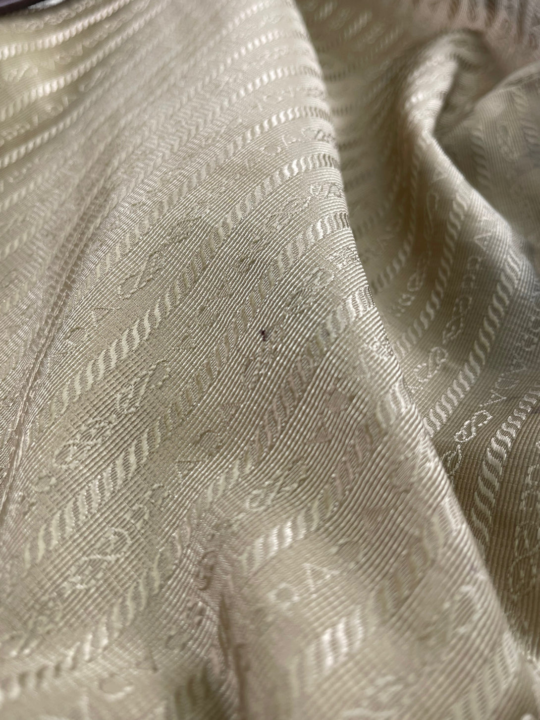 Good: Items show more prominent wear such as noticeable discoloration, stains and snags to fabric. May have worn corners and handles, tarnishing to hardware and creasing to leather. Pen or make up marks may be visible in the interior of the bag.