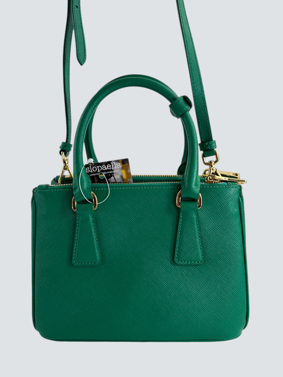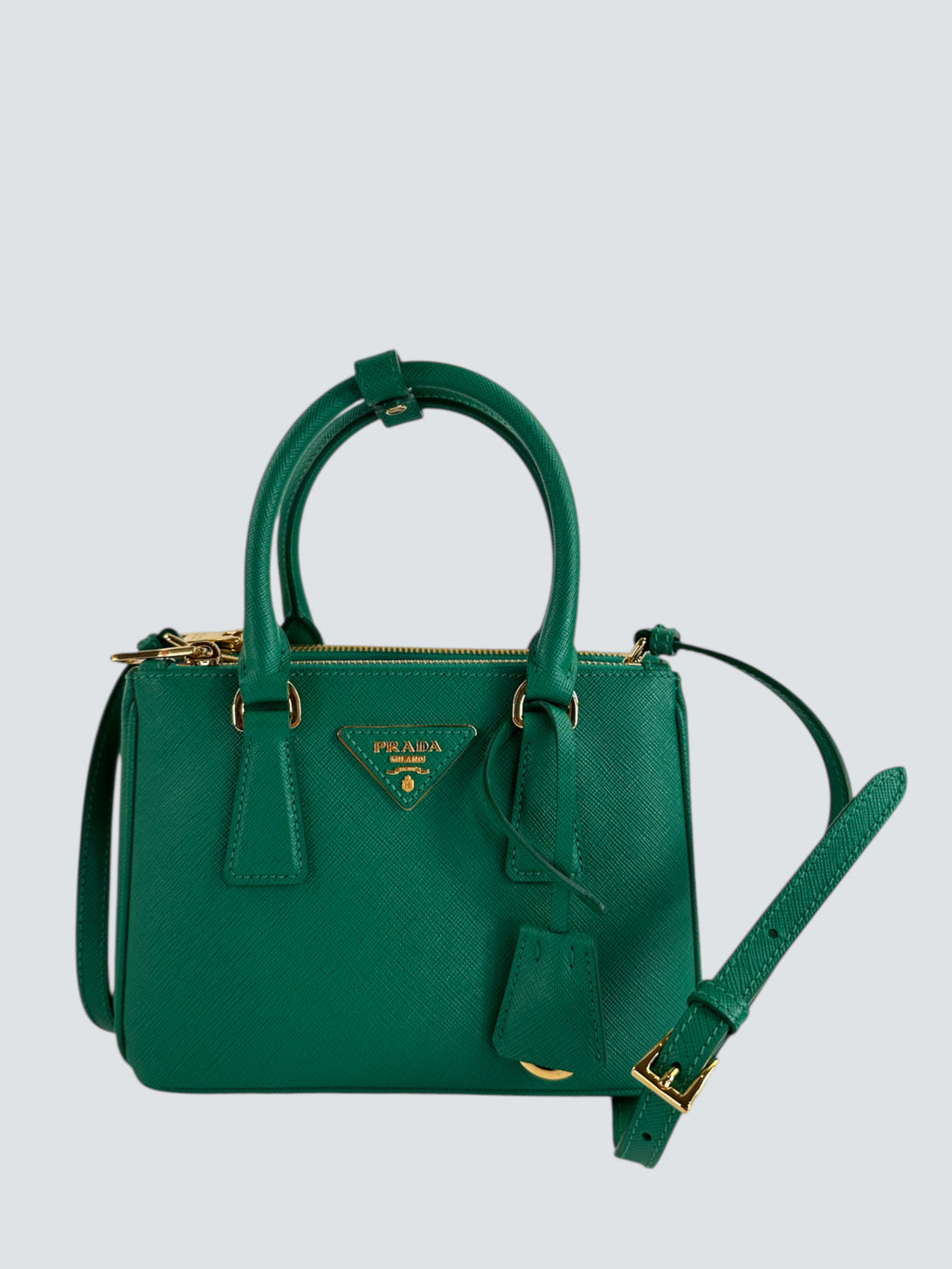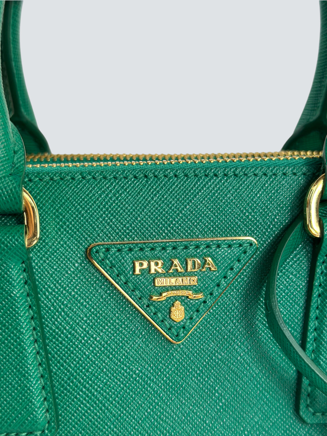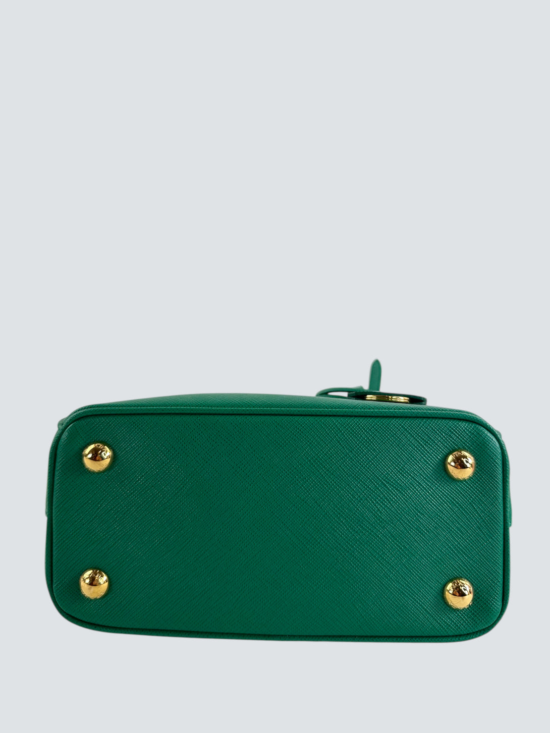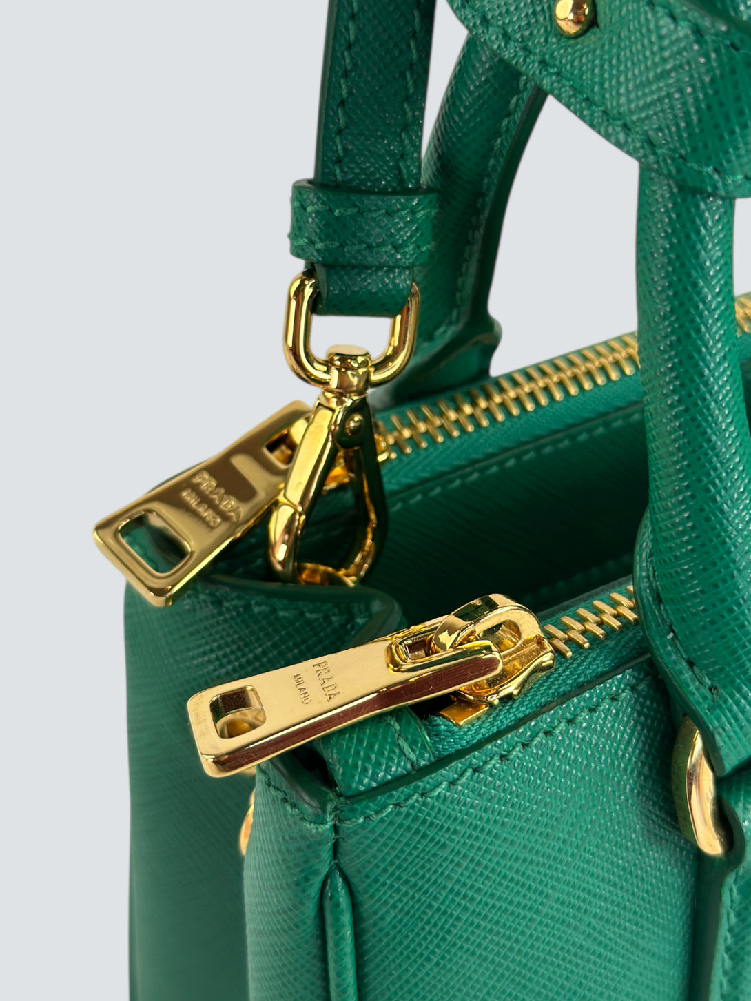 Prada Green Leather Mini Galleria Double Zip Crossbody Tote