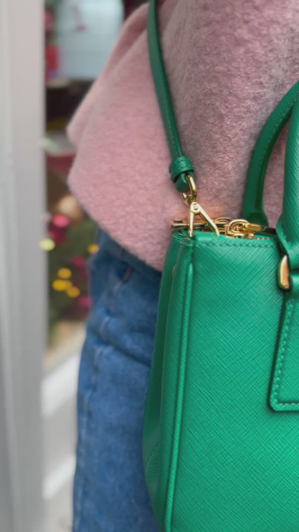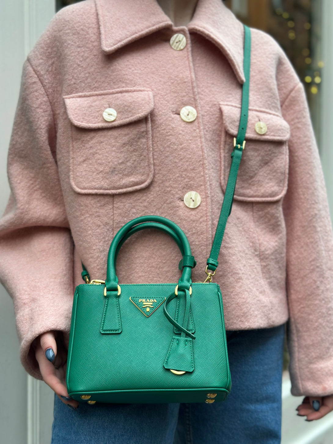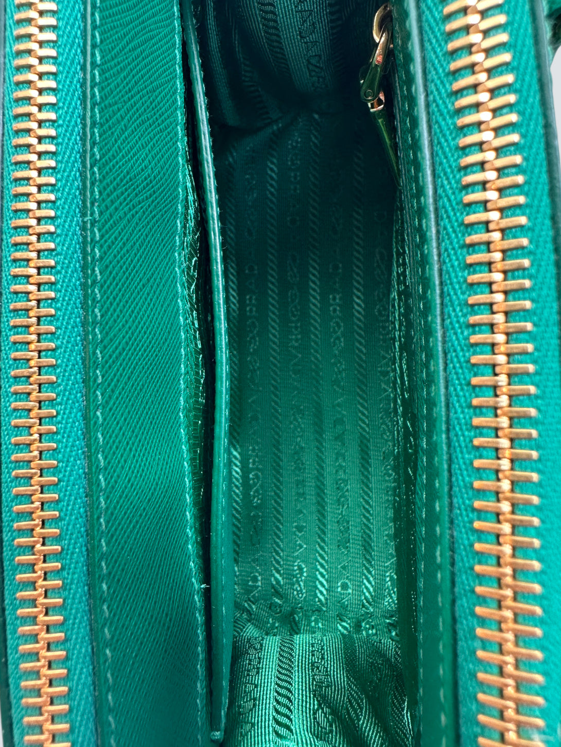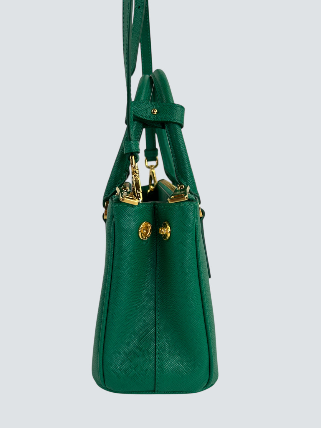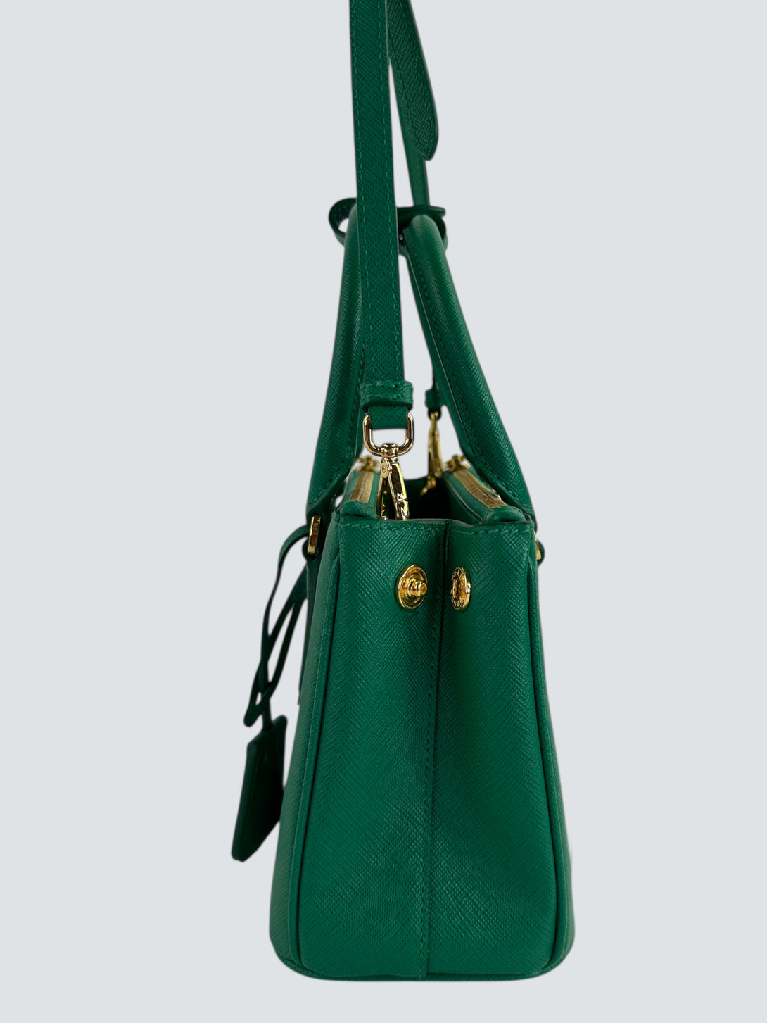 Prada Green Leather Mini Galleria Double Zip Crossbody Tote
