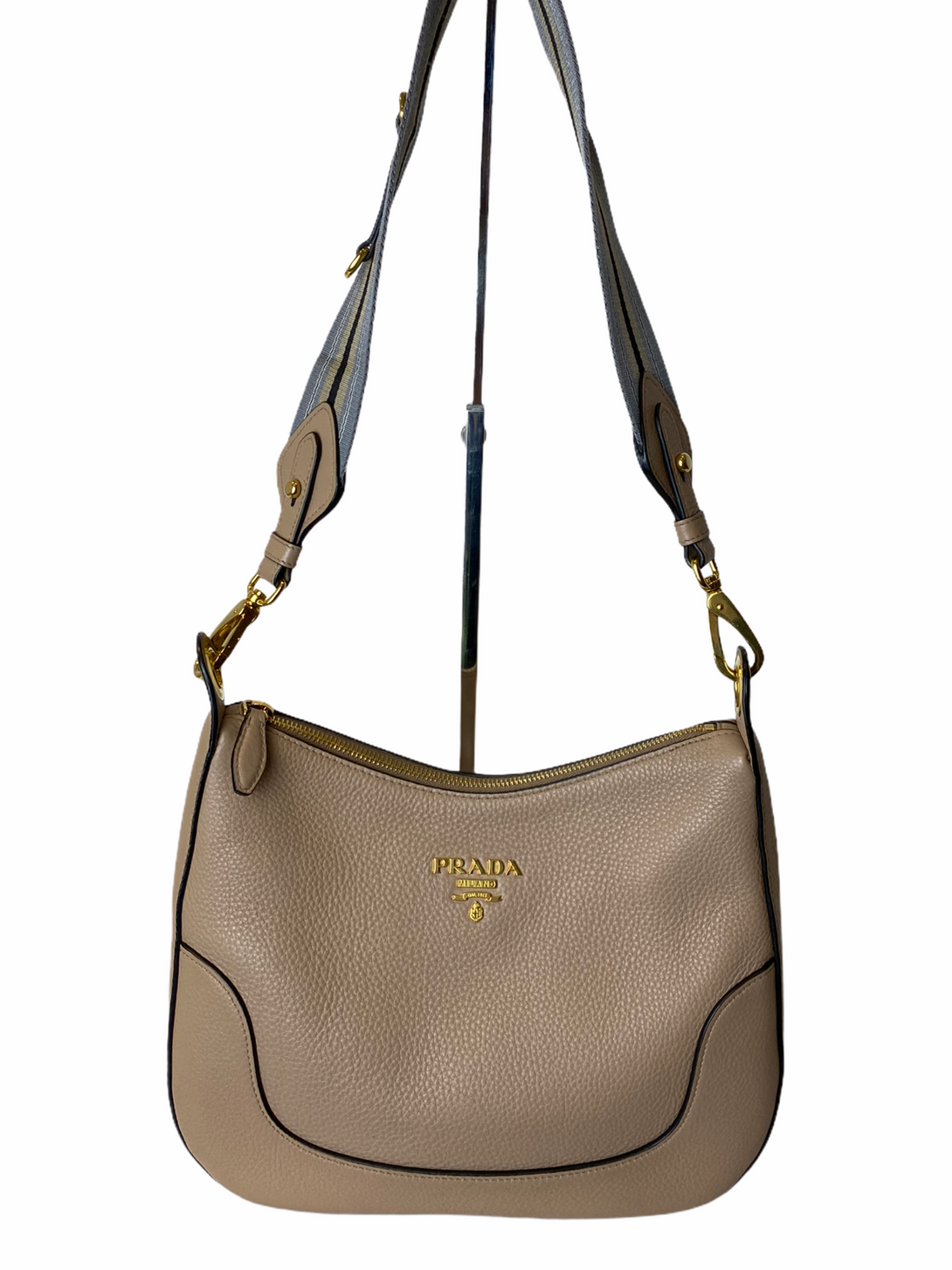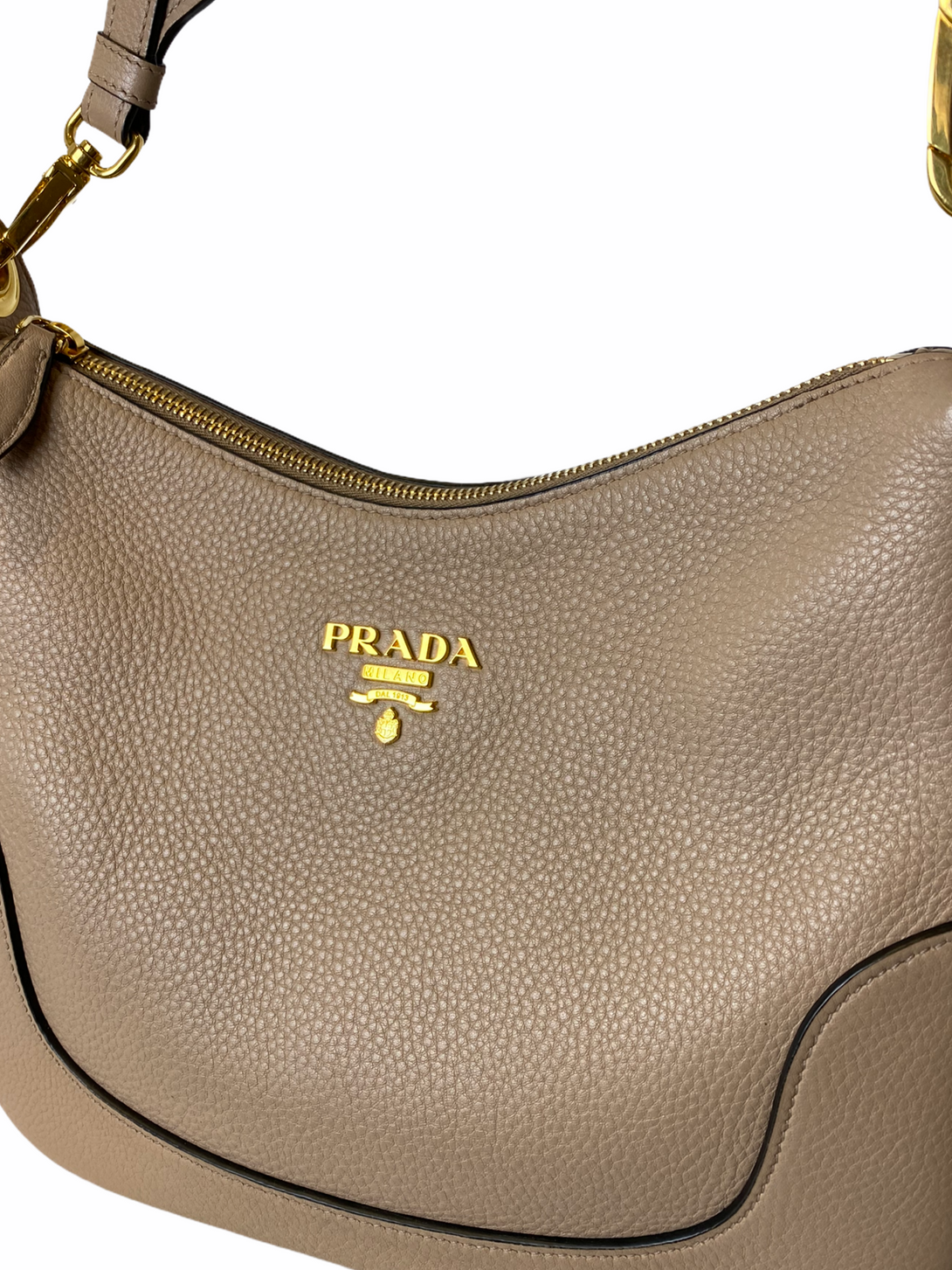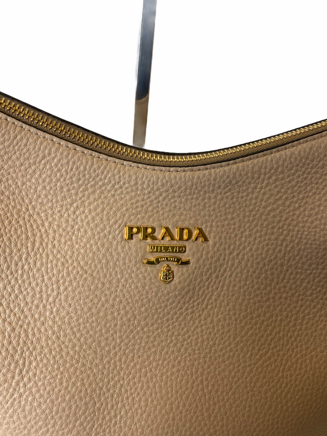 Prada Nude Pebbled Leather Zip Vitello Daino Shoulder Bag - As Seen on Instagram 07/02/21