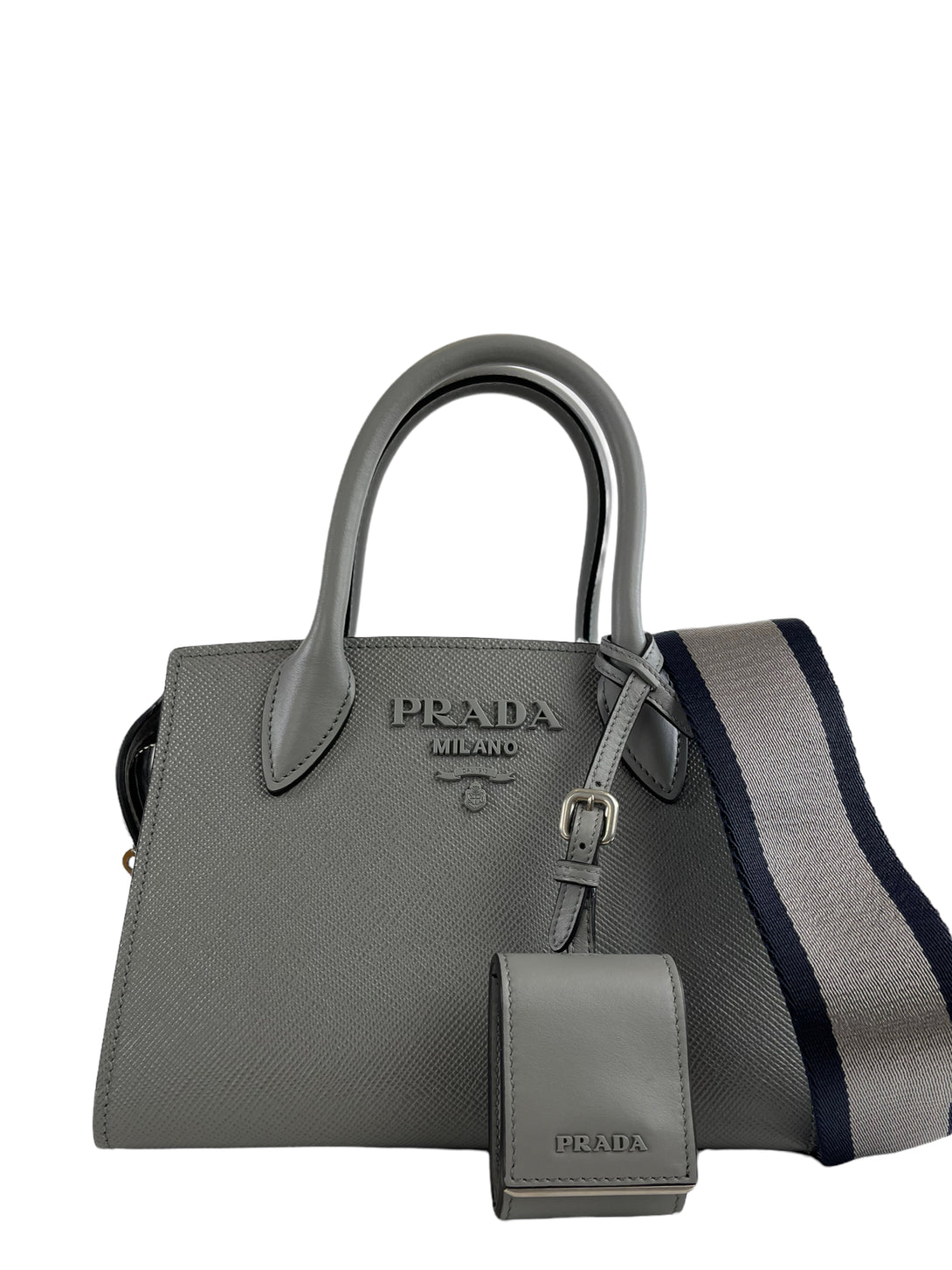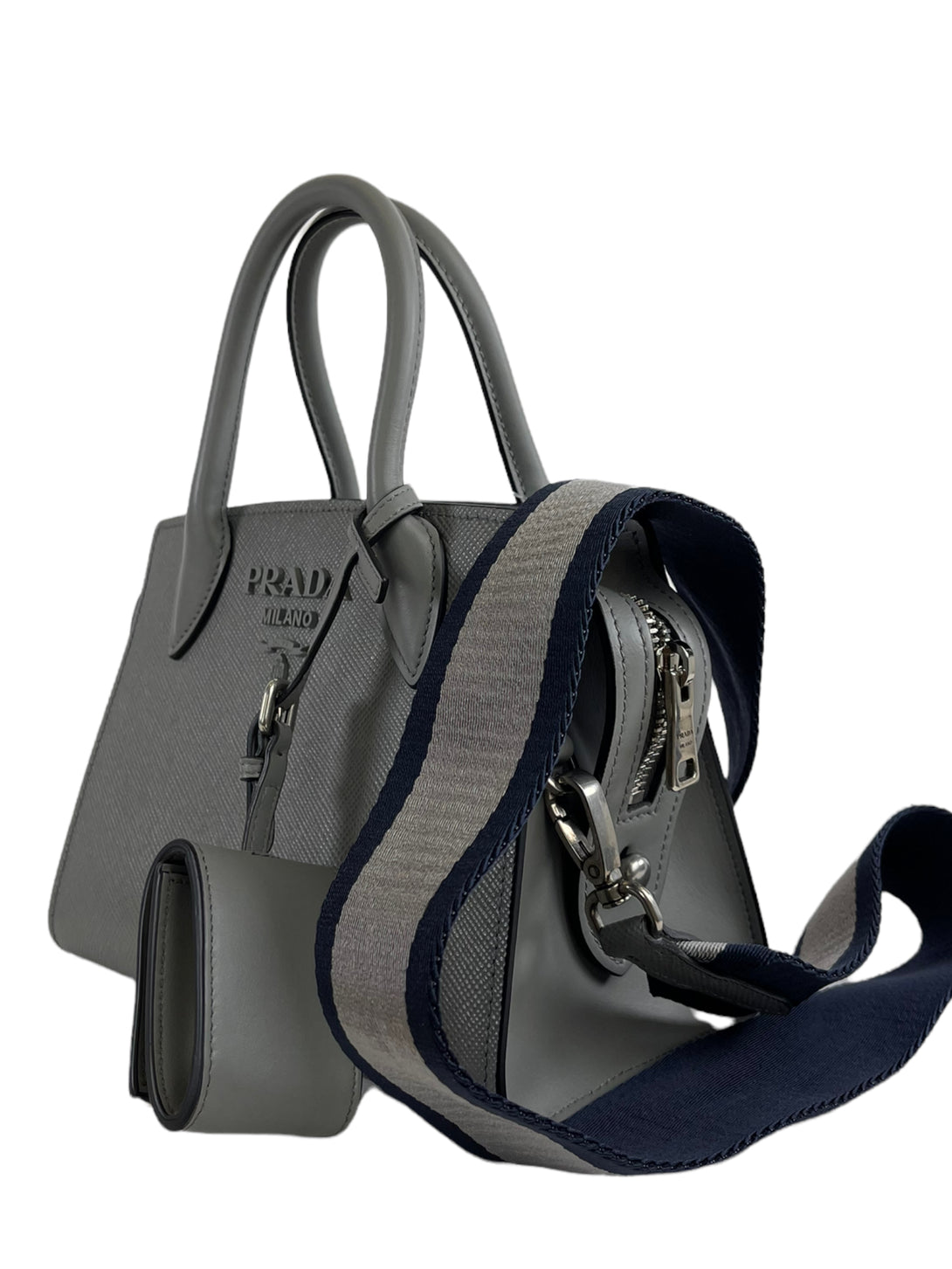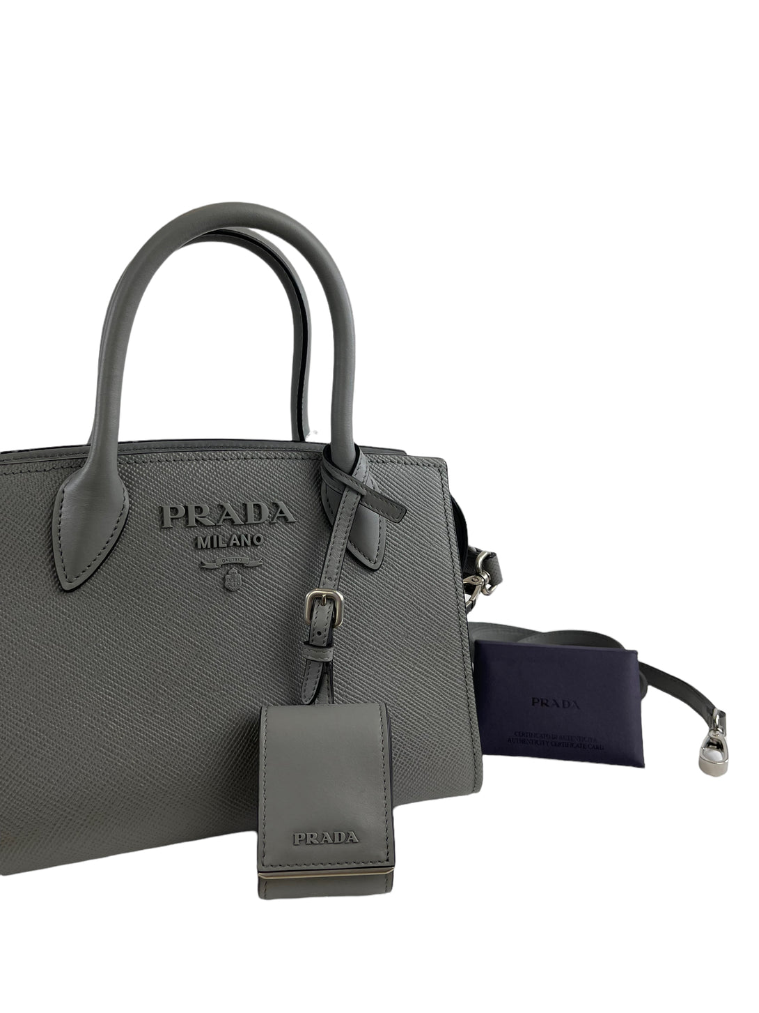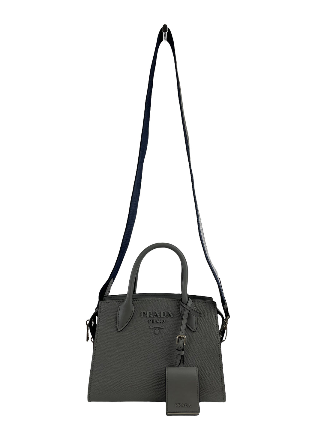 Prada Slate Grey Monochrome Saffiano Leather Crossbody Tote