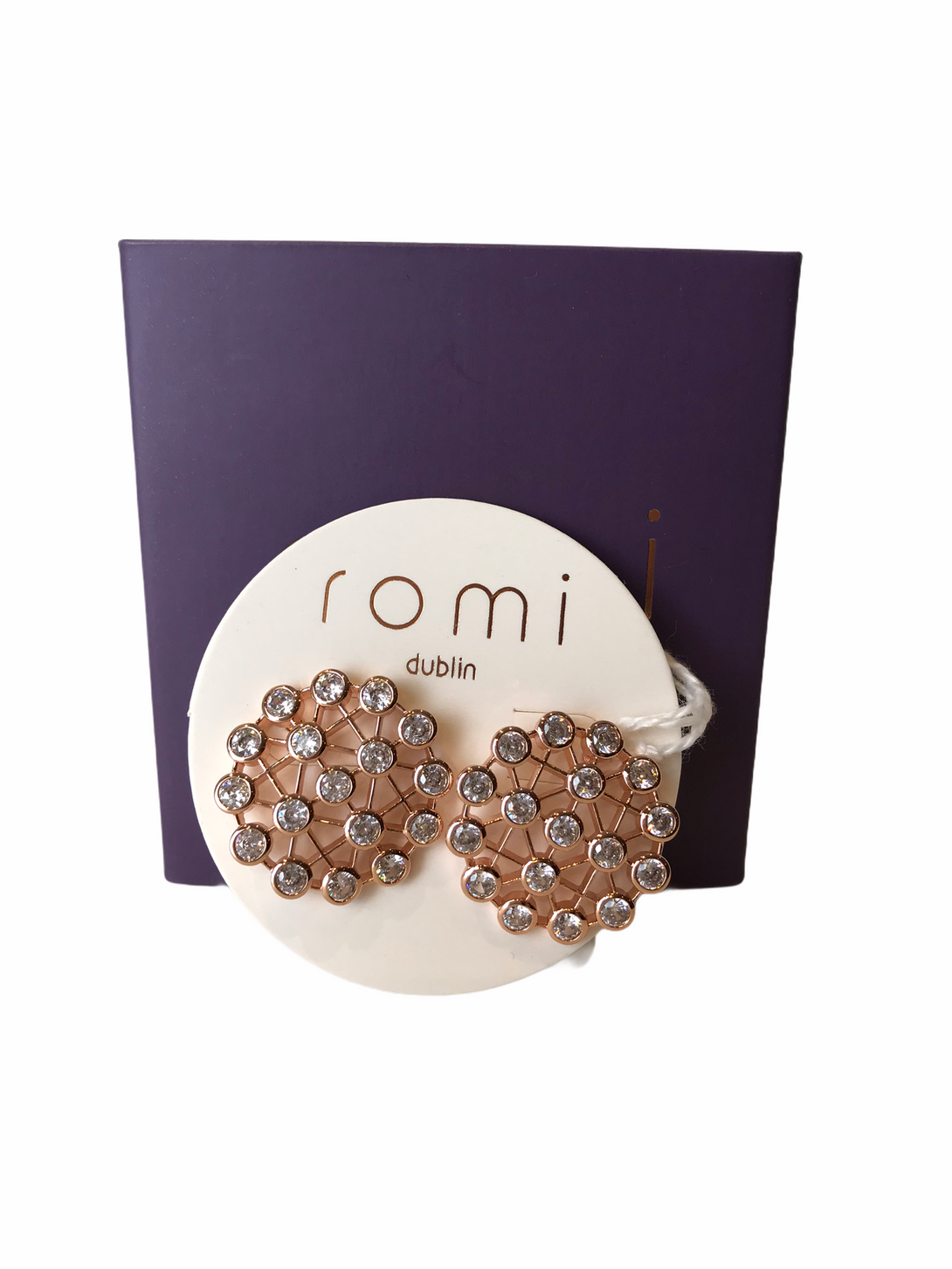 Romi Dublin Rosegold Earrings- earrings have backs attached and comes with box