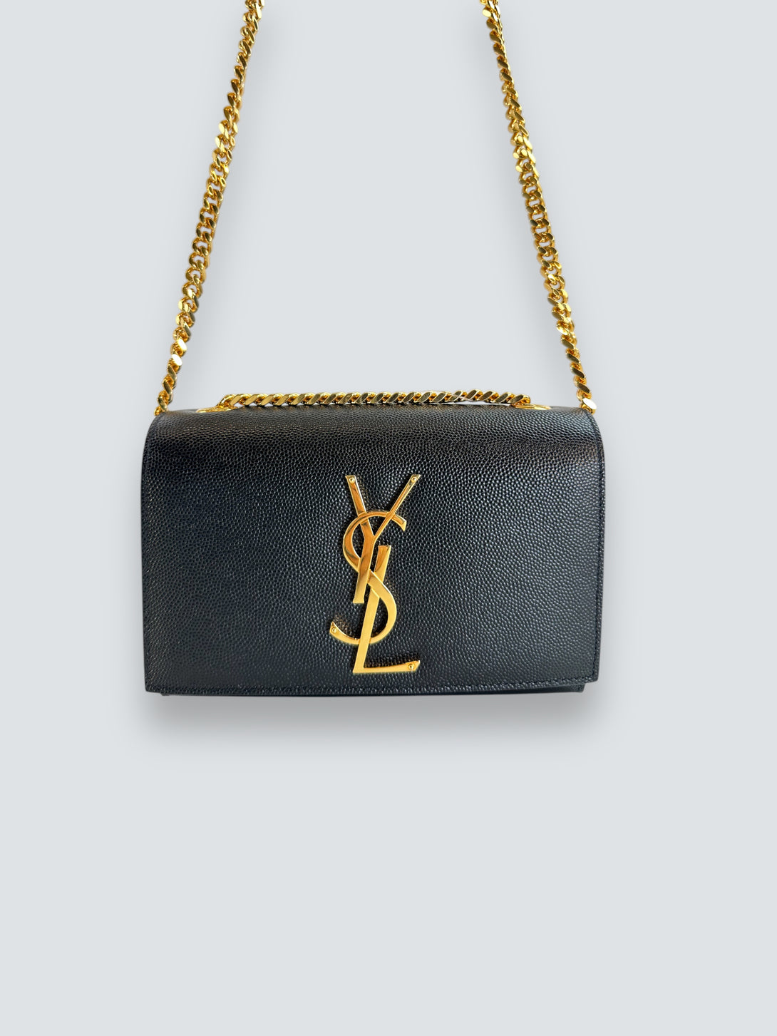 Saint Laurent Black Grain de Poudre Leather Mini Kate Crossbody
