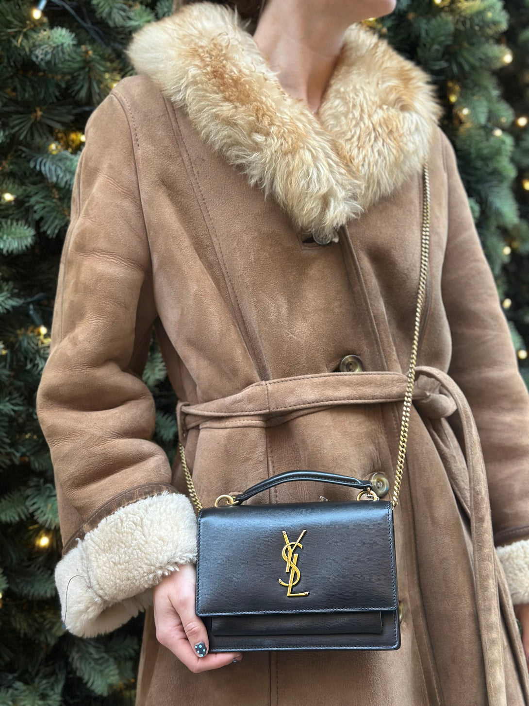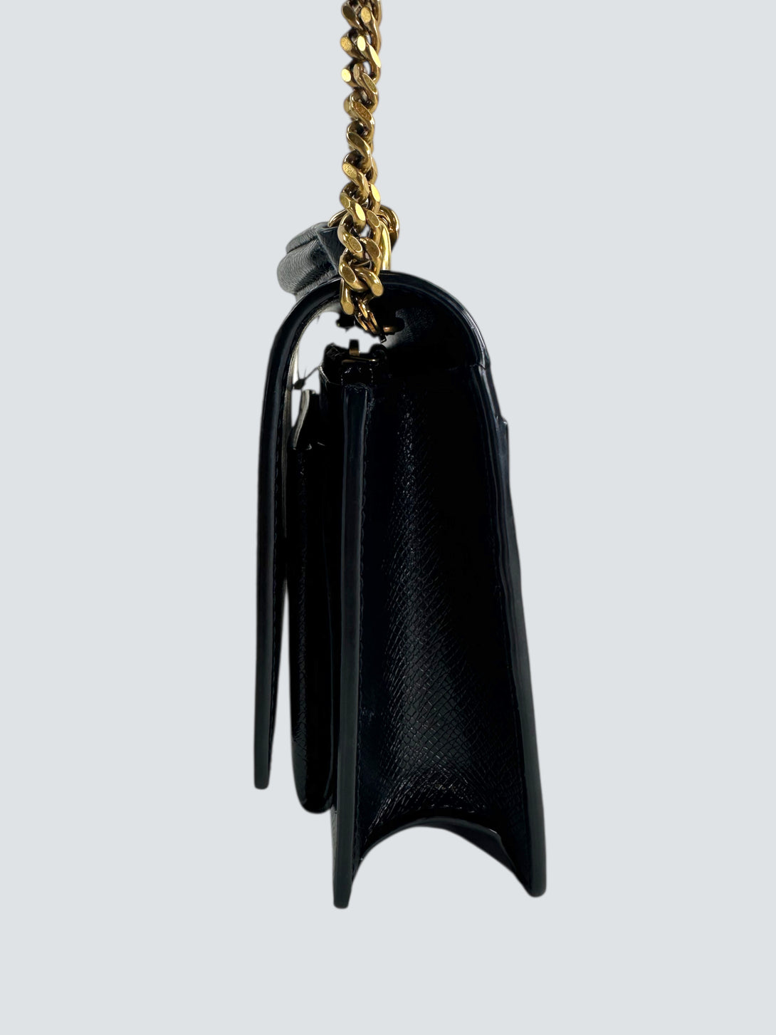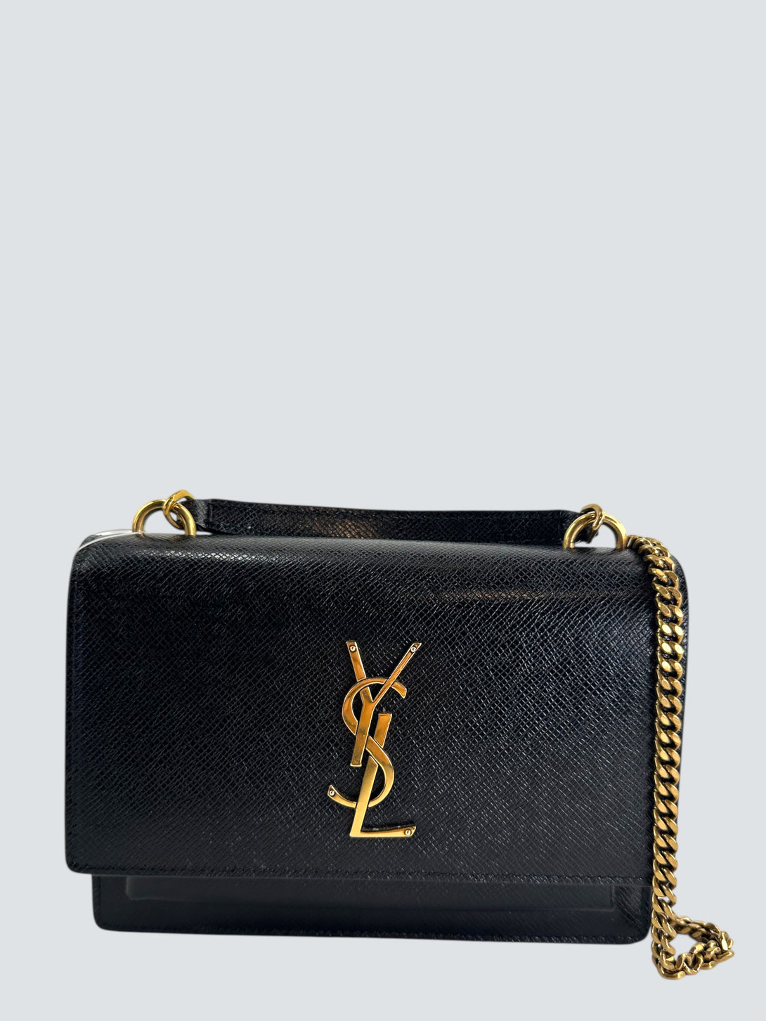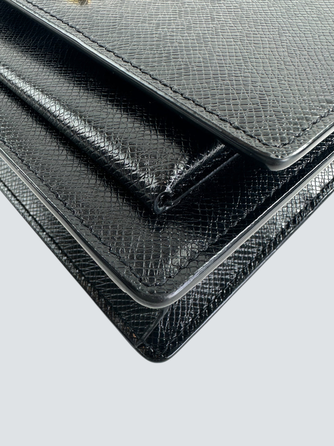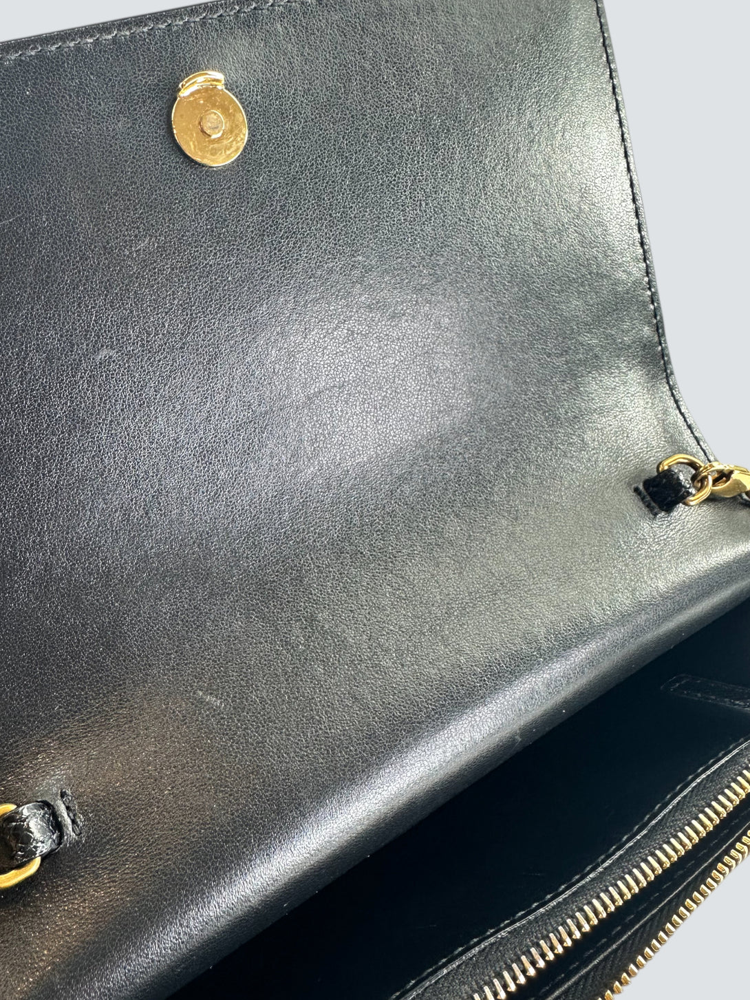 Saint Laurent Black Leather Sunset Wallet on Chain