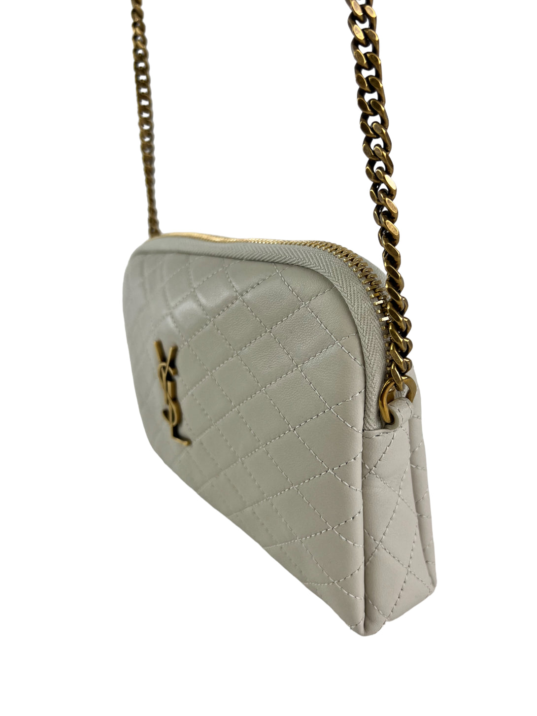 Saint Laurent Cream Quilted Leather Chain Gaby Crossbody