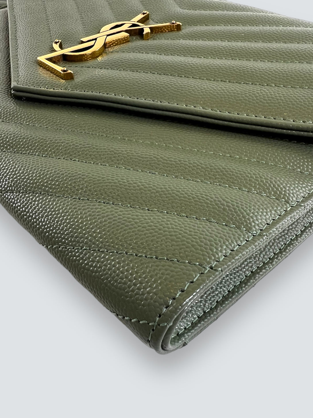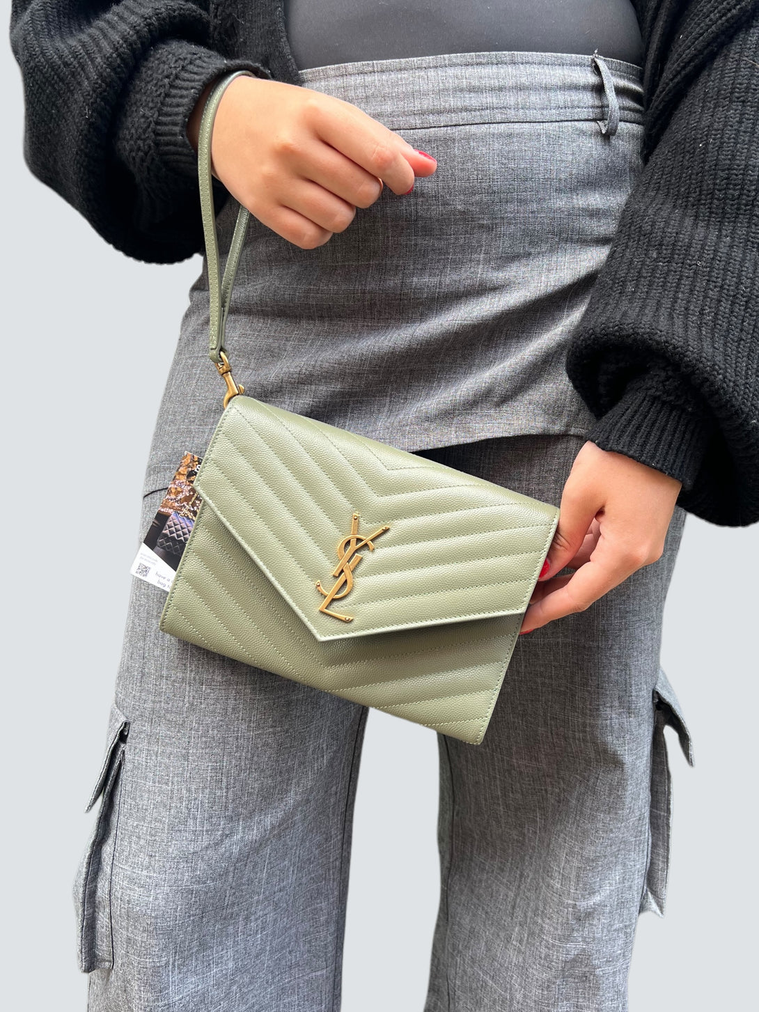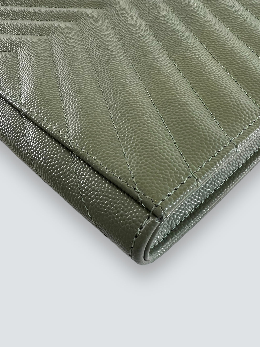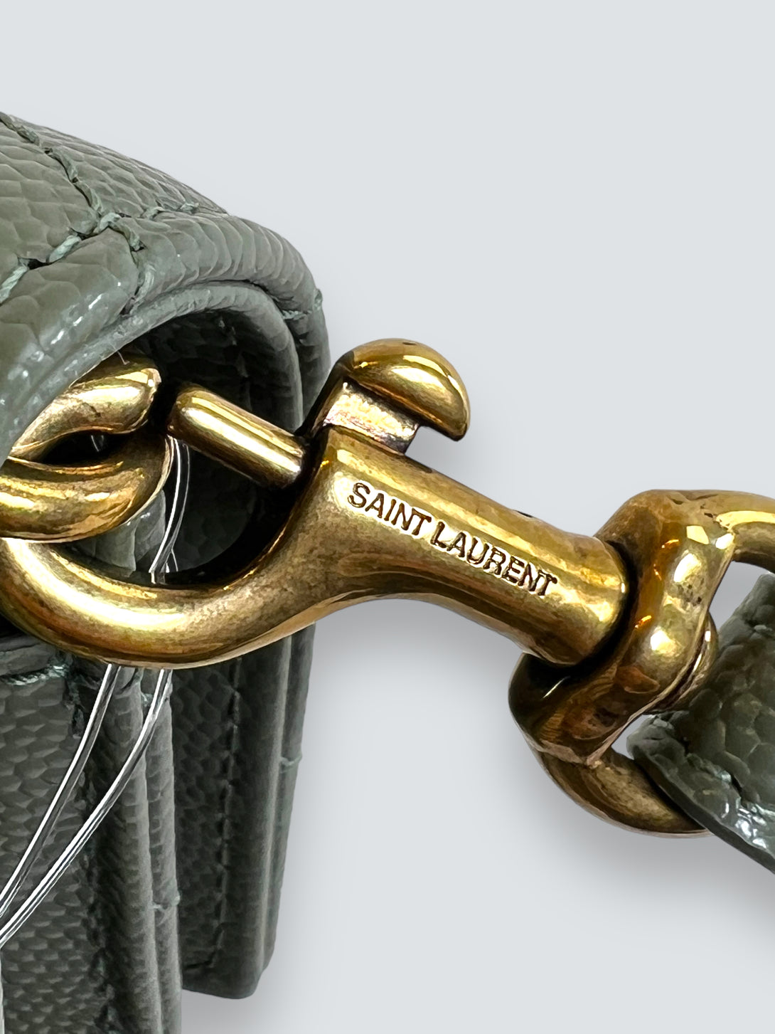 Saint Laurent Sage Green Cassandre Matelassé Flap Pouch in Quilted Grain de Poudre Embossed Leather