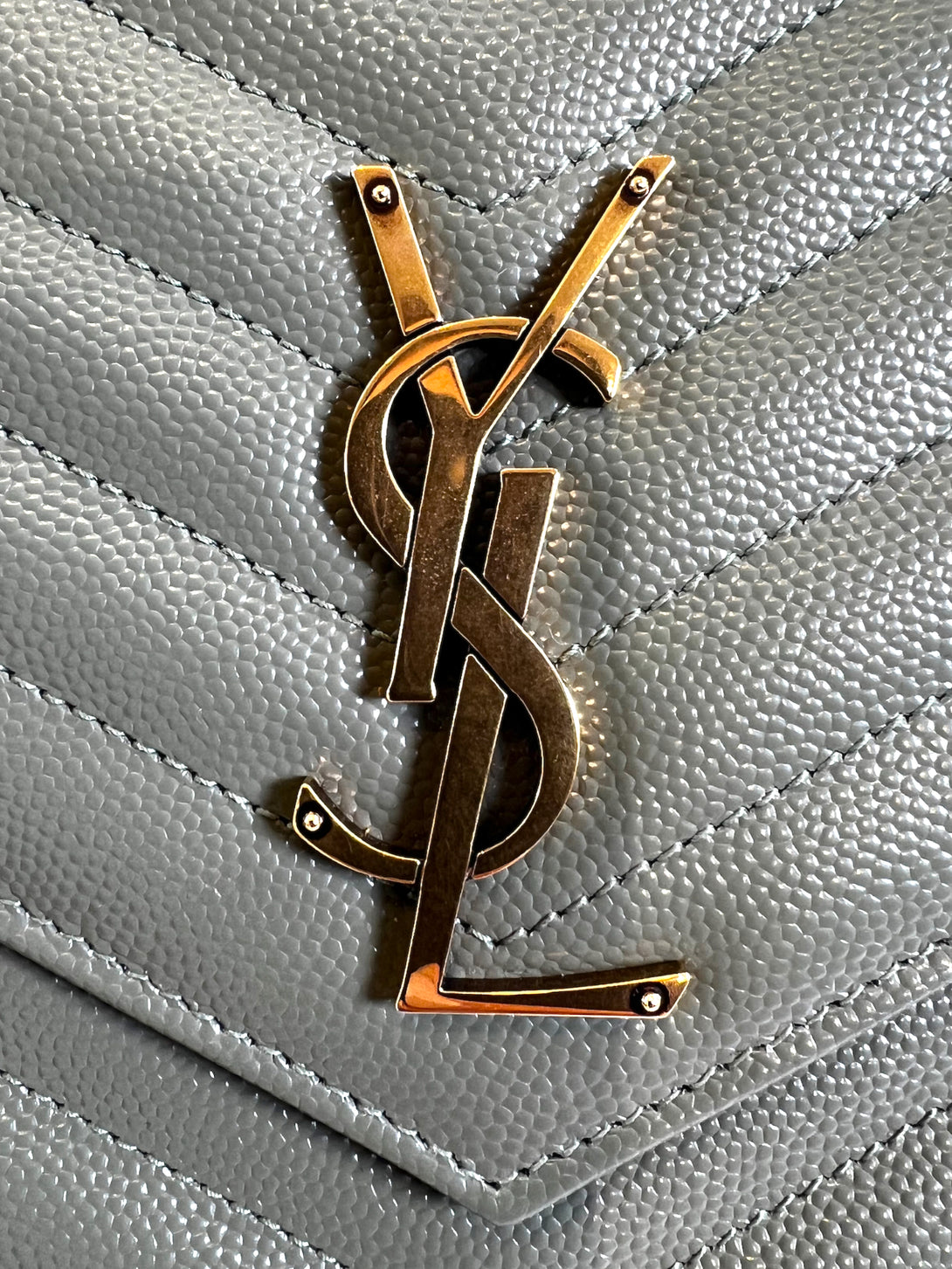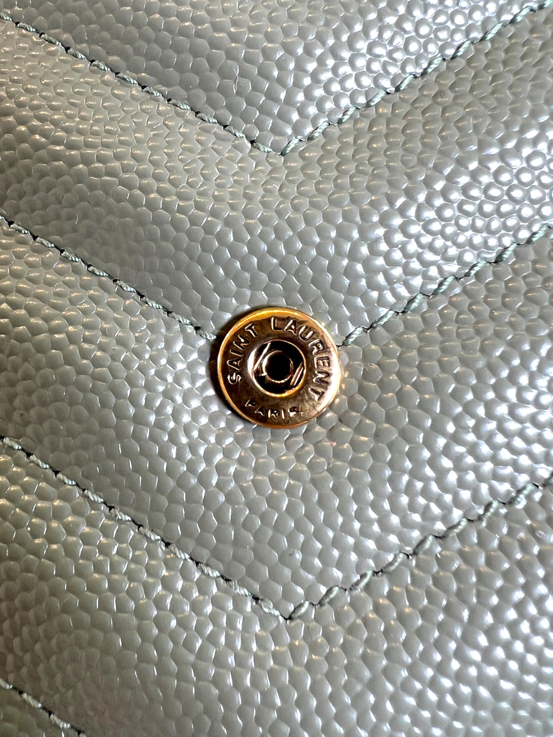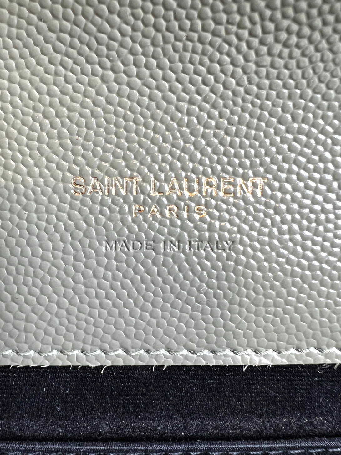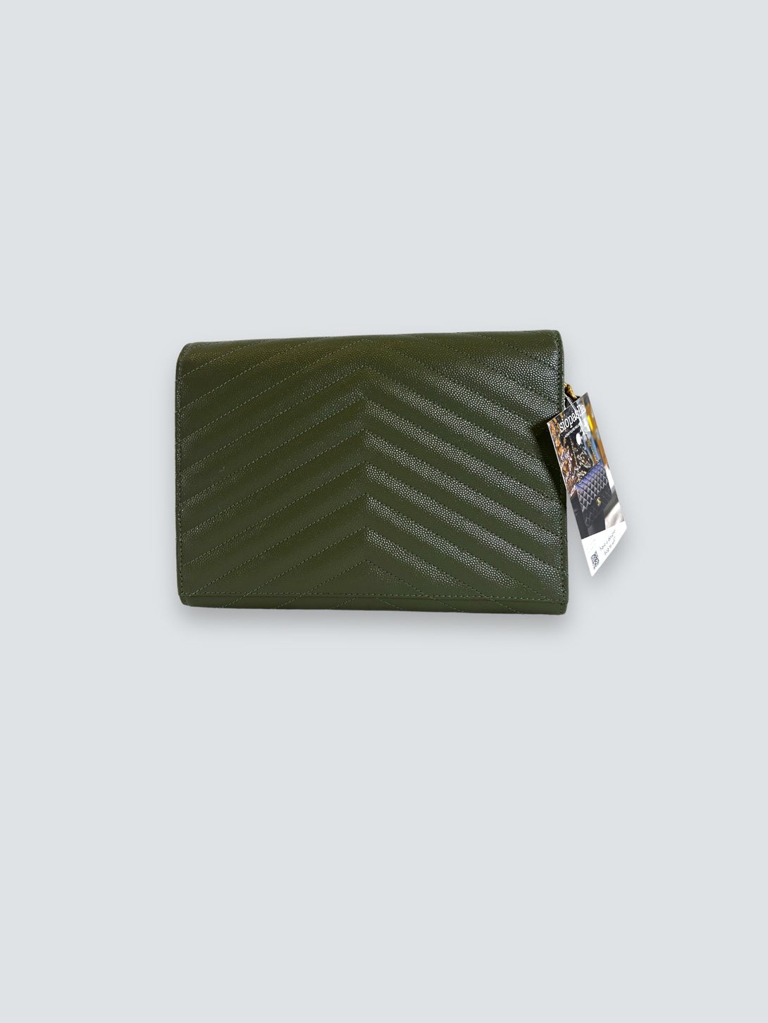 Saint Laurent Sage Green Cassandre Matelassé Flap Pouch in Quilted Grain de Poudre Embossed Leather