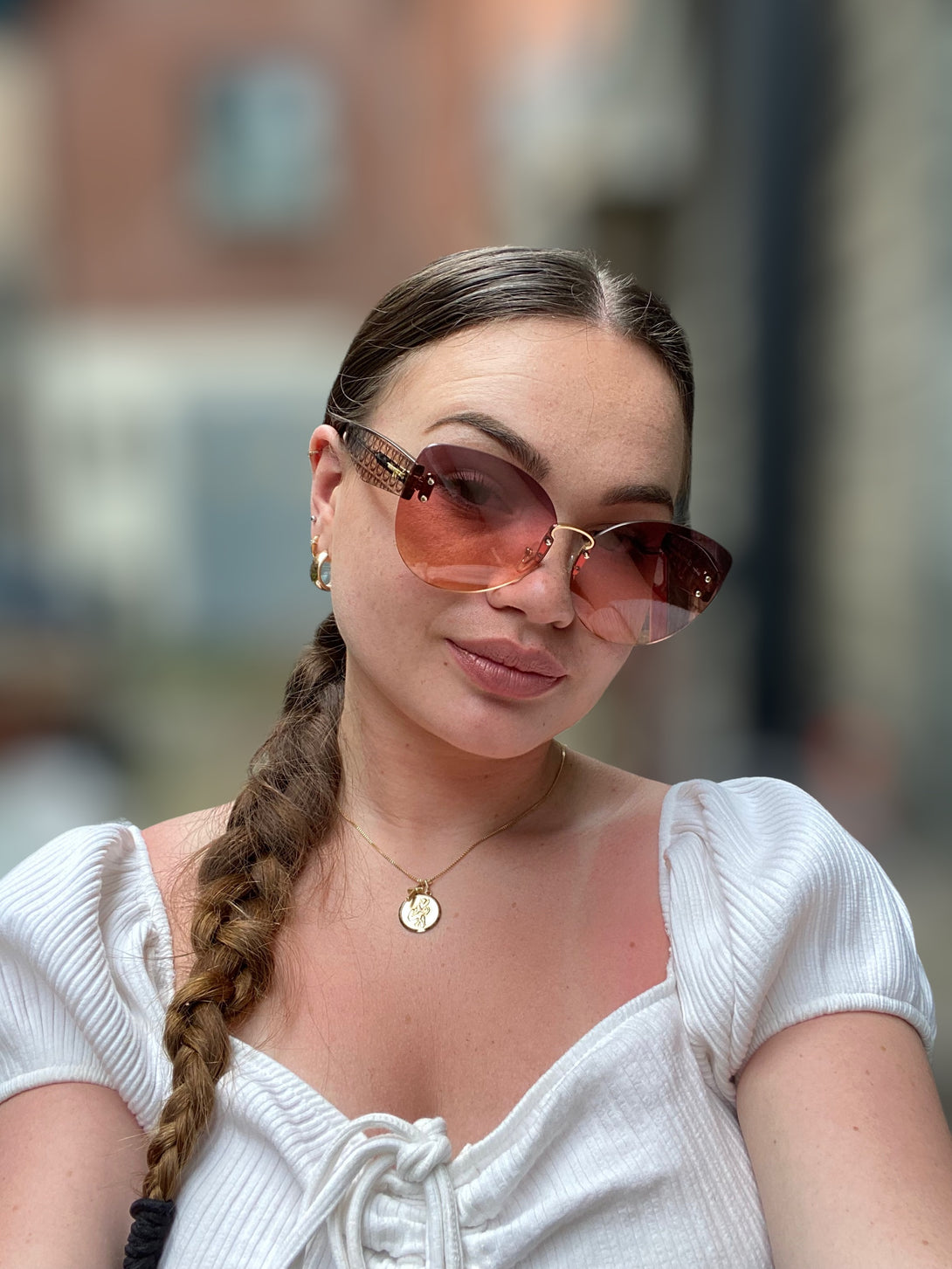 Salvatore Ferragamo Rose Tinted Oversized Sunglasses