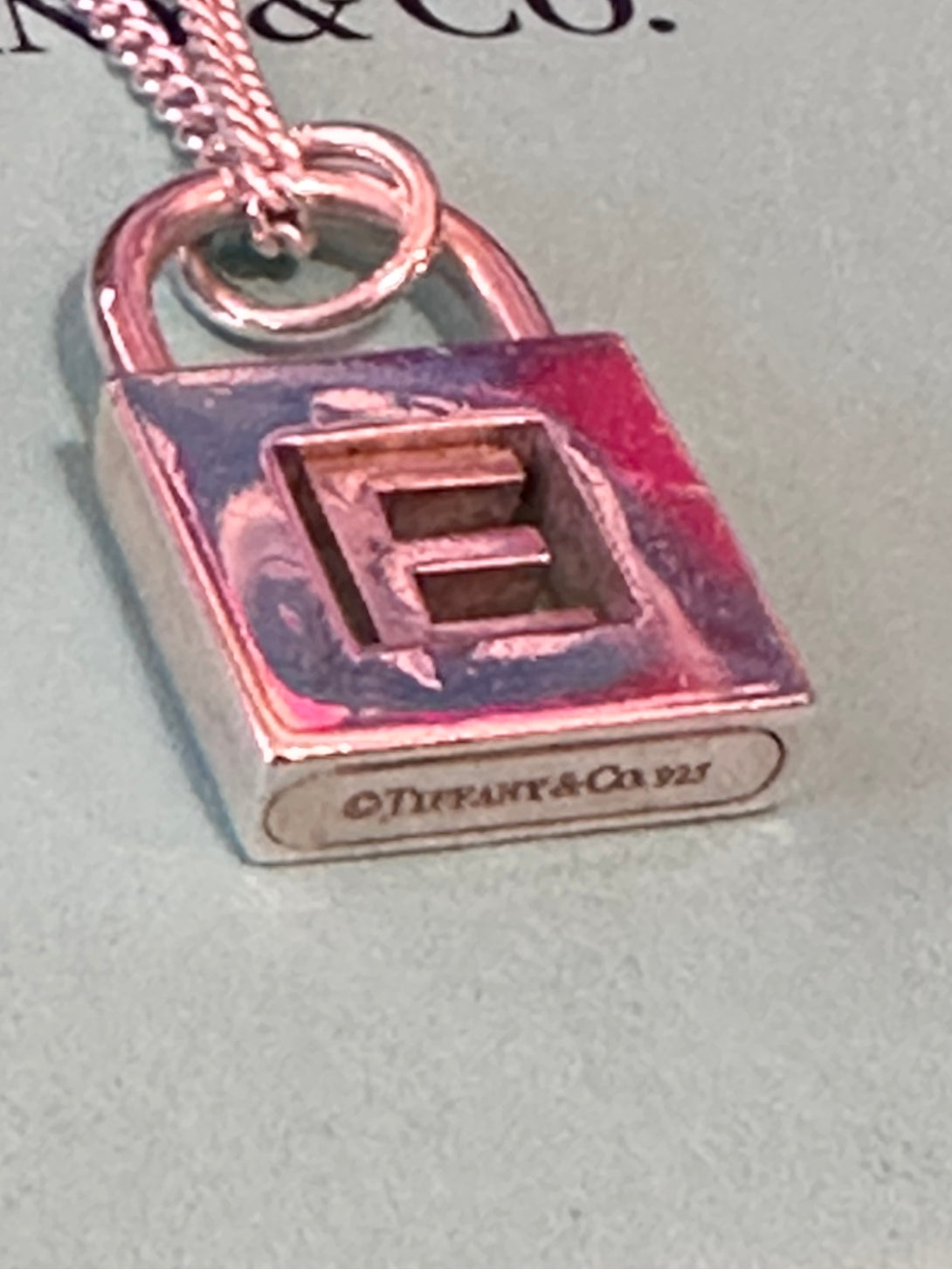 Tiffany & Co. Sterling Silver Letter Charm Pendant Necklace (Chain not original Tiffany)