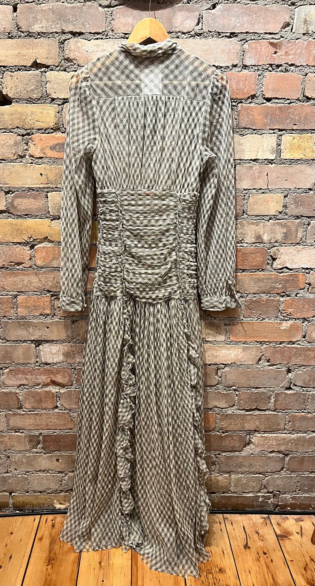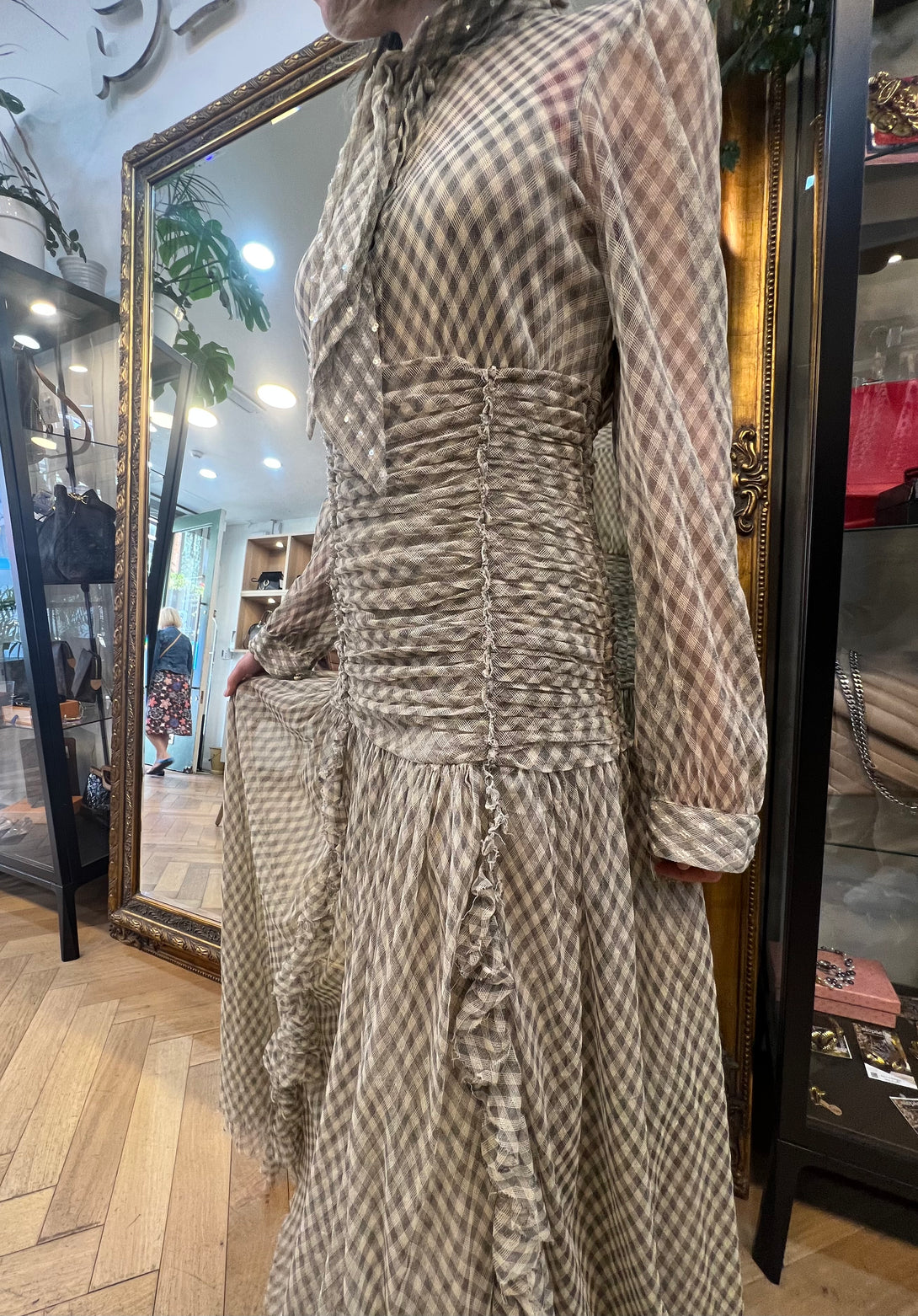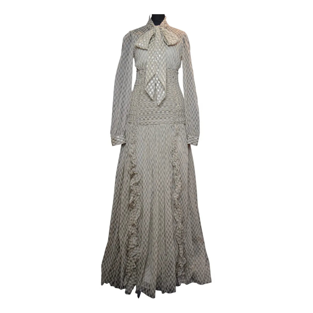 Tory Burch Beige Checked Maxi Dress with Sequin Detailing - Size S/M