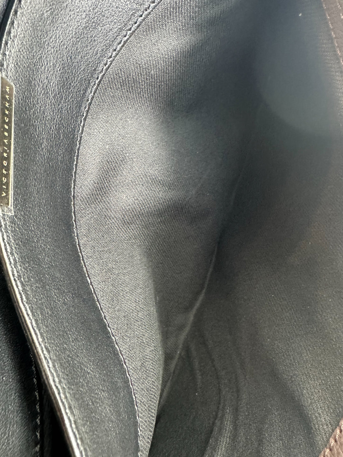 Good: Items show more prominent wear such as noticeable discoloration, stains and snags to fabric. May have worn corners and handles, tarnishing to hardware and creasing to leather. Pen or make up marks may be visible in the interior of the bag.