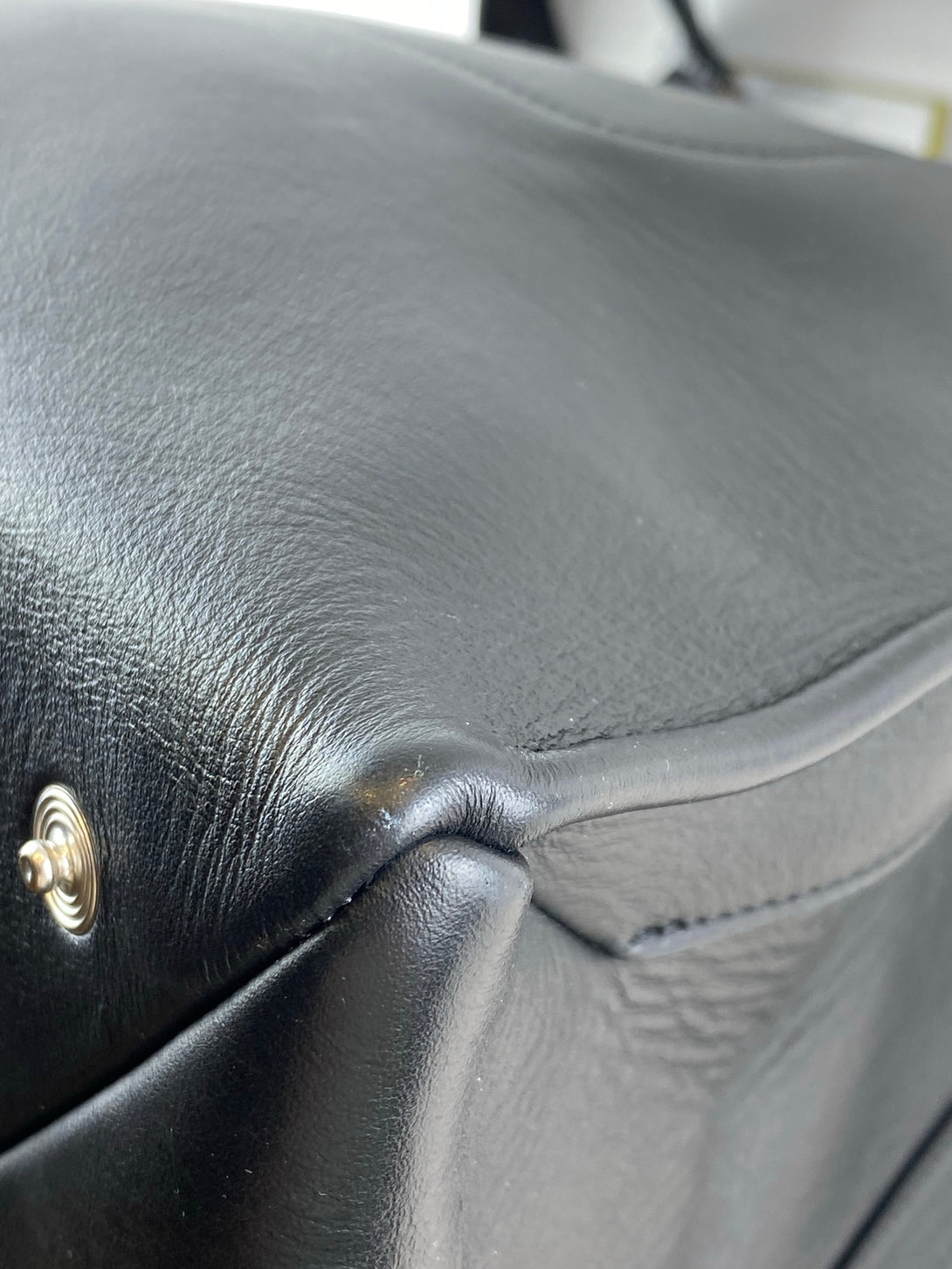 Fair: Very prominent wear, may have holes on corners, severe scuffs, piping of bag showing and pen marks to exterior. Interior may have pen or make up marks.