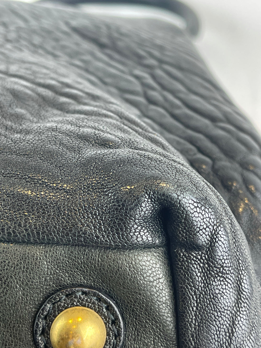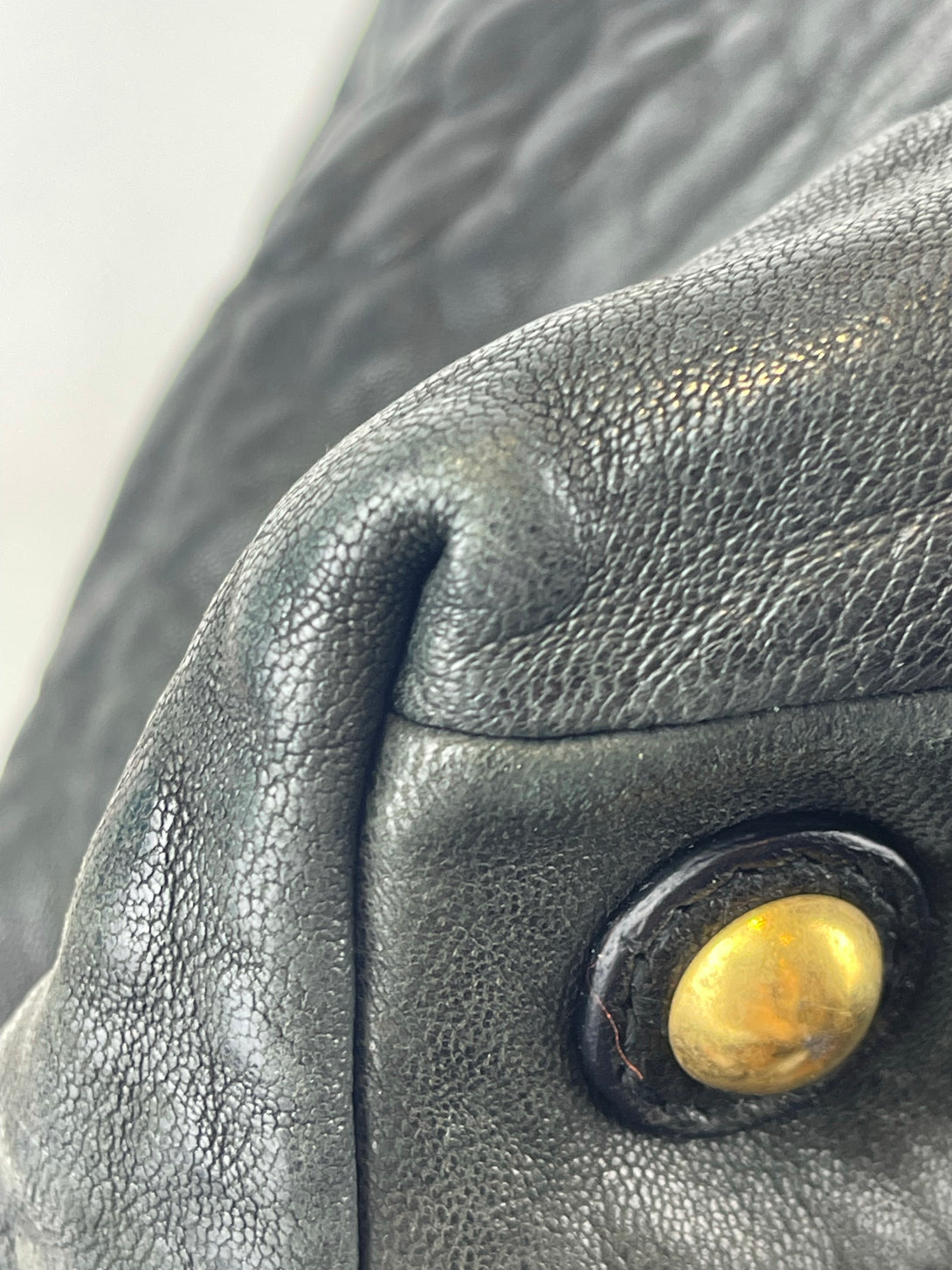 Good: Items show more prominent wear such as noticeable discoloration, stains and snags to fabric. May have worn corners and handles, tarnishing to hardware and creasing to leather. Pen or make up marks may be visible in the interior of the bag.