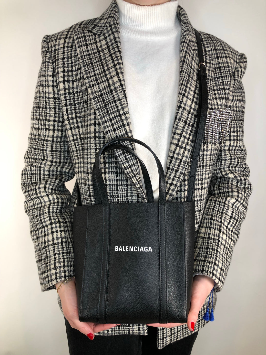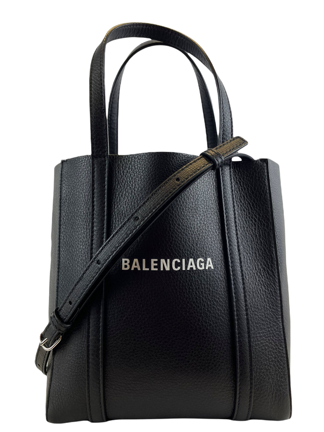 Balenciaga Small Black Leather Logo Crossbody Tote