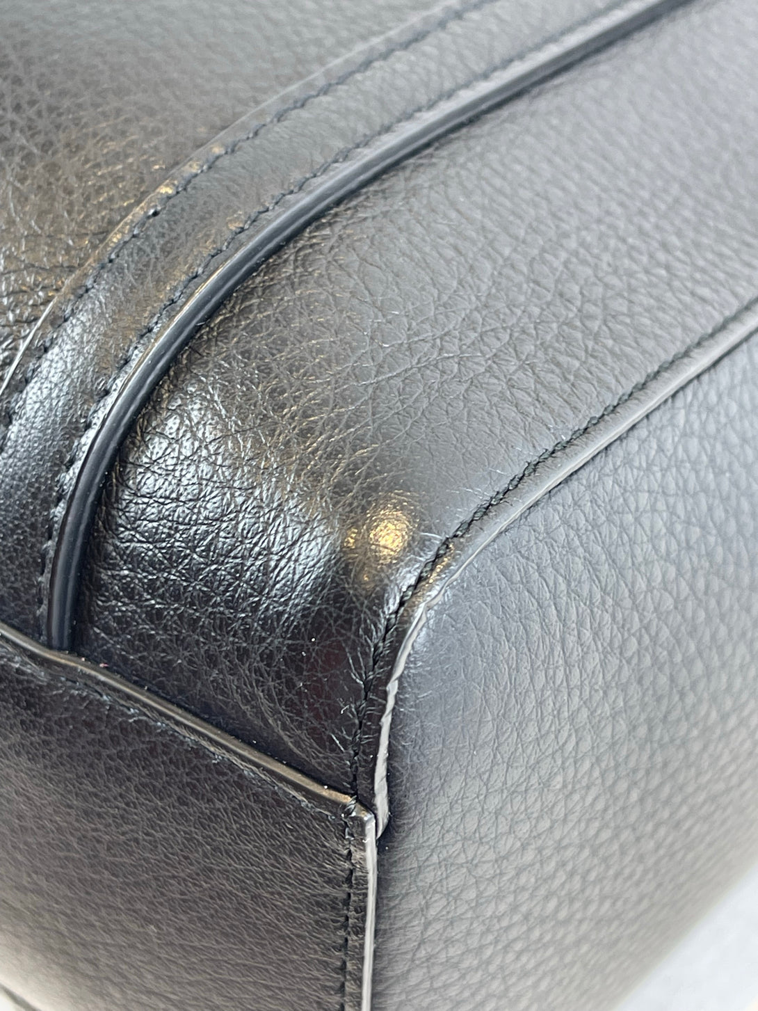 Fair: Very prominent wear, may have holes on corners, severe scuffs, piping of bag showing and pen marks to exterior. Interior may have pen or make up marks.
