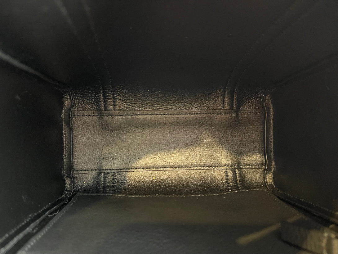 Good: Items show more prominent wear such as noticeable discoloration, stains and snags to fabric. May have worn corners and handles, tarnishing to hardware and creasing to leather. Pen or make up marks may be visible in the interior of the bag.