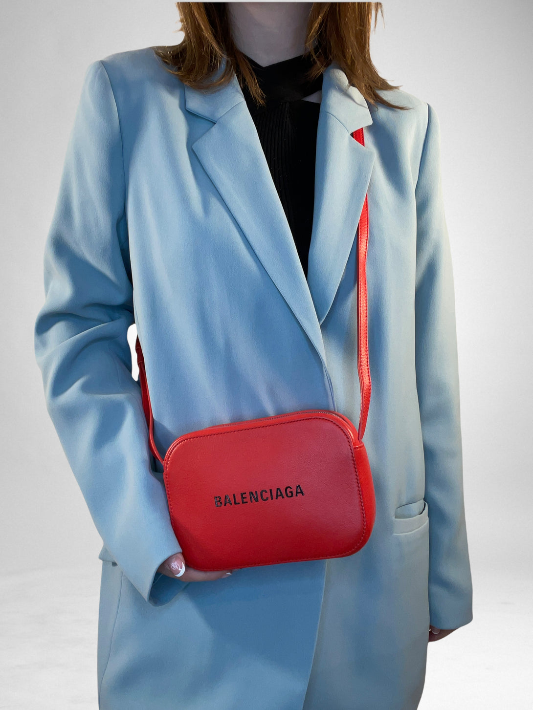Balenciaga Red Leather “Everyday Camera Bag” Crossbody
