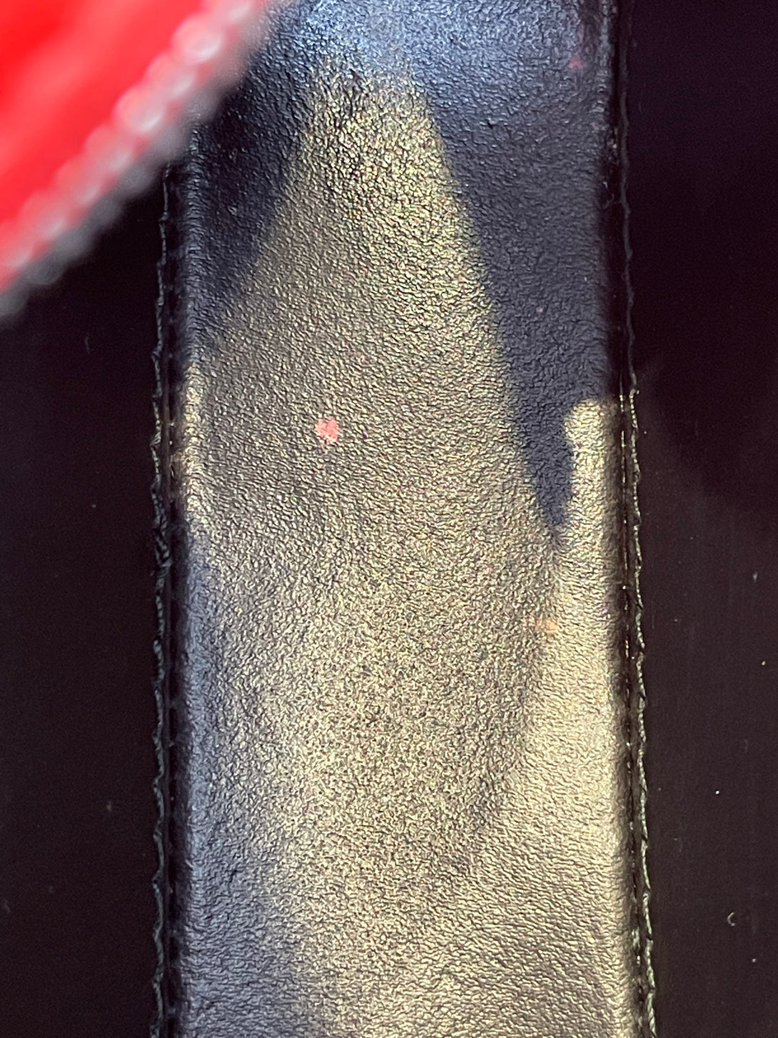 Good: Items show more prominent wear such as noticeable discoloration, stains and snags to fabric. May have worn corners and handles, tarnishing to hardware and creasing to leather. Pen or make up marks may be visible in the interior of the bag.