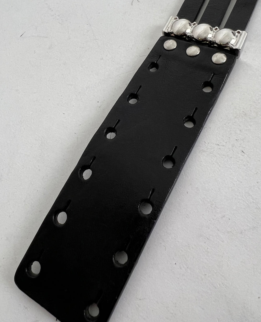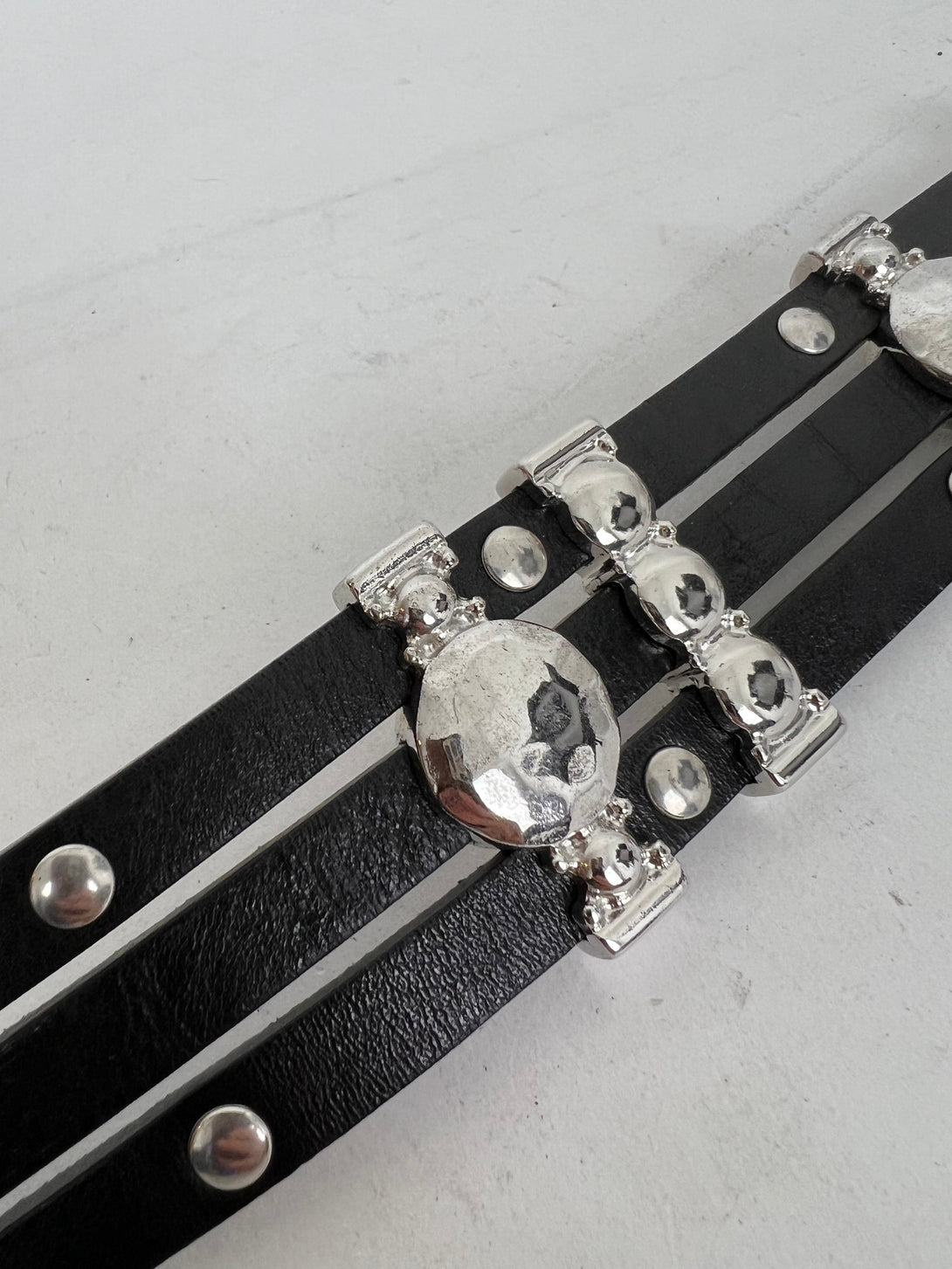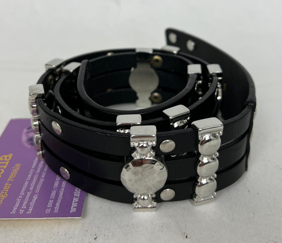 Black leather and silver tone studded belt - AS-IS - As Seen on Instagram