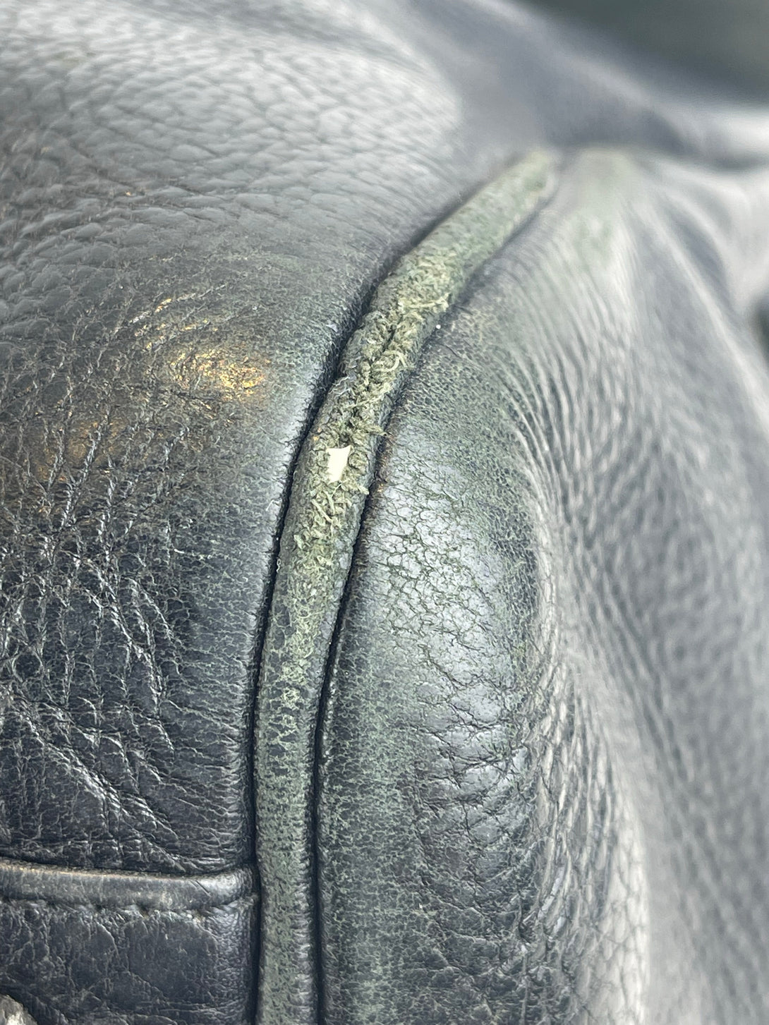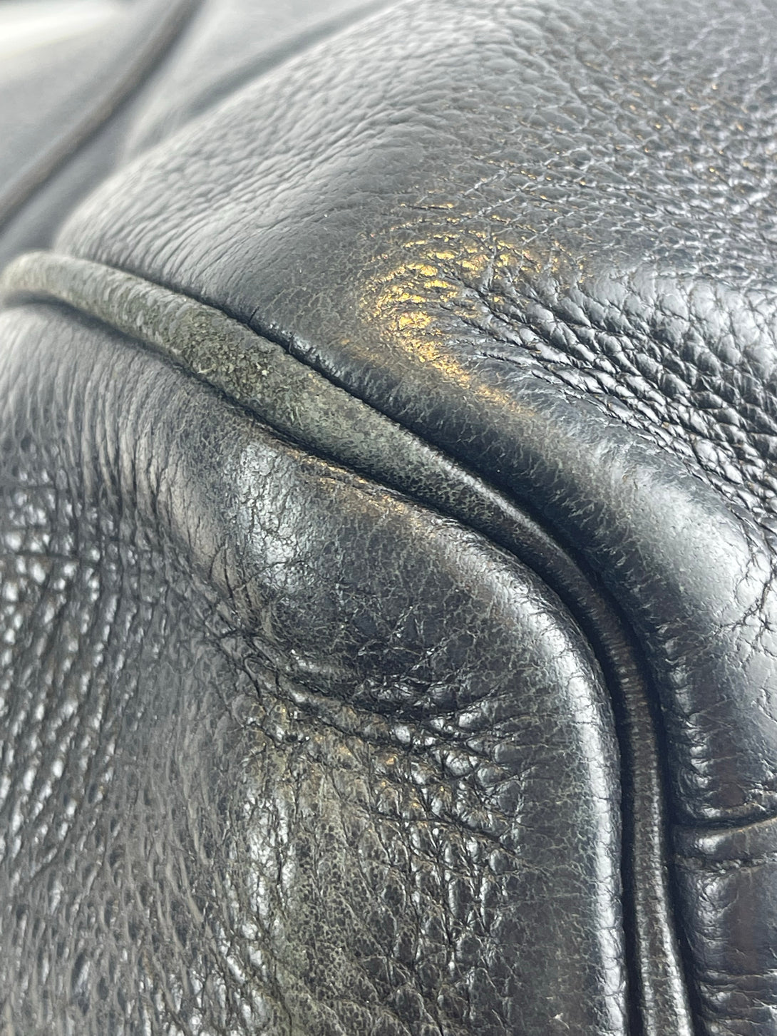 Good: Items show more prominent wear such as noticeable discoloration, stains and snags to fabric. May have worn corners and handles, tarnishing to hardware and creasing to leather. Pen or make up marks may be visible in the interior of the bag.
