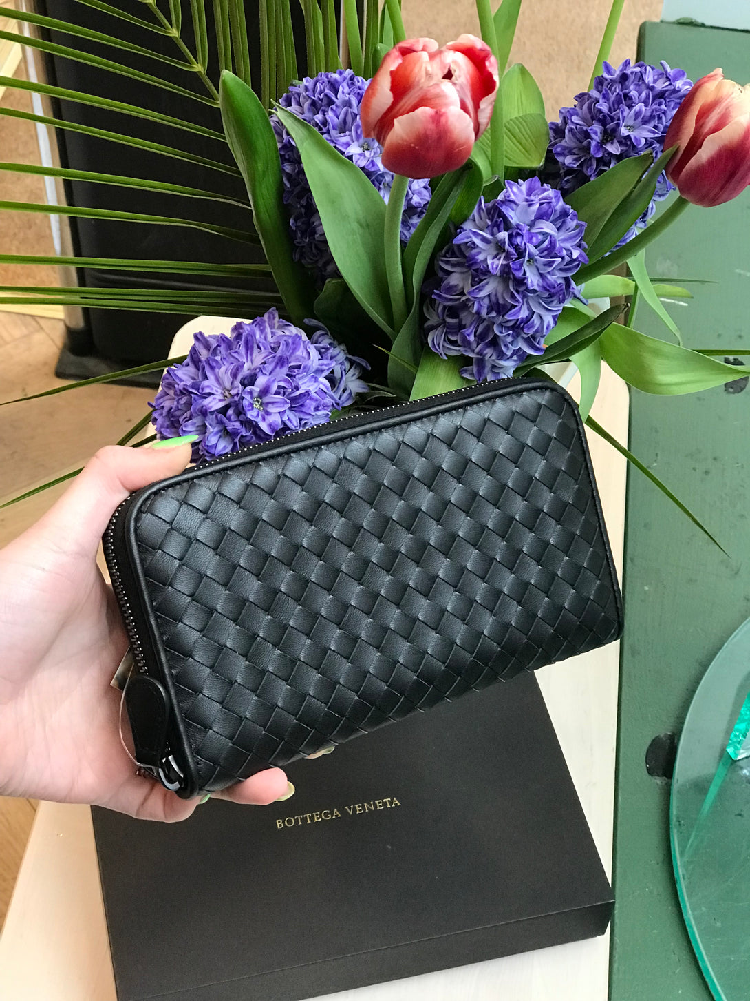 Bottega Veneta Black Woven Leather Wallet