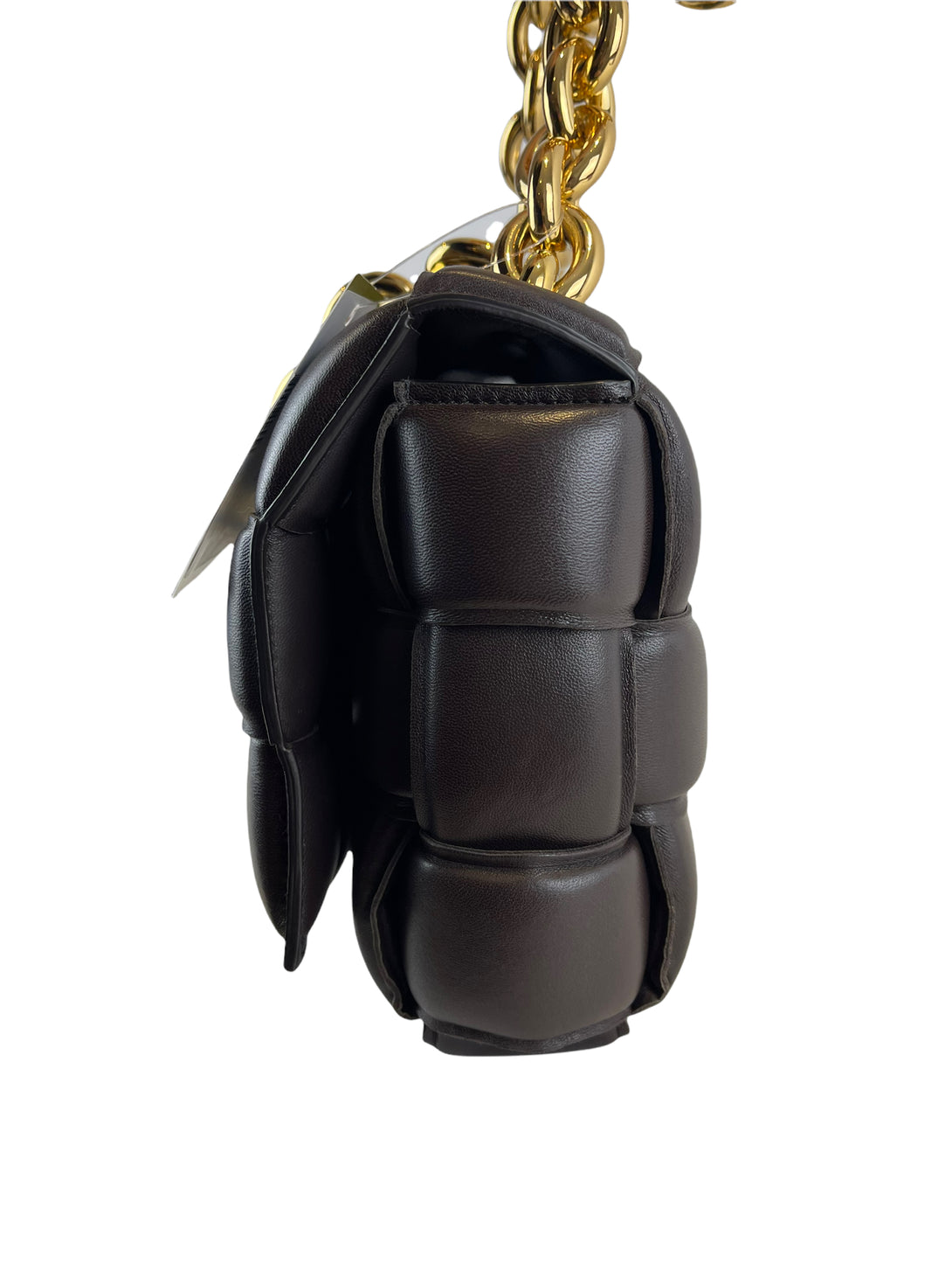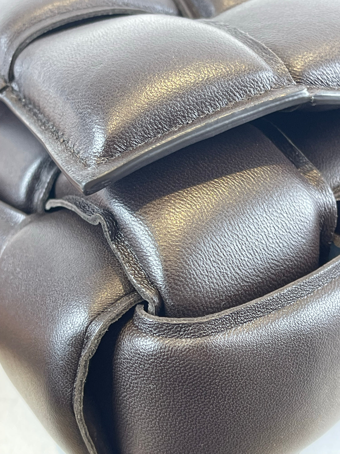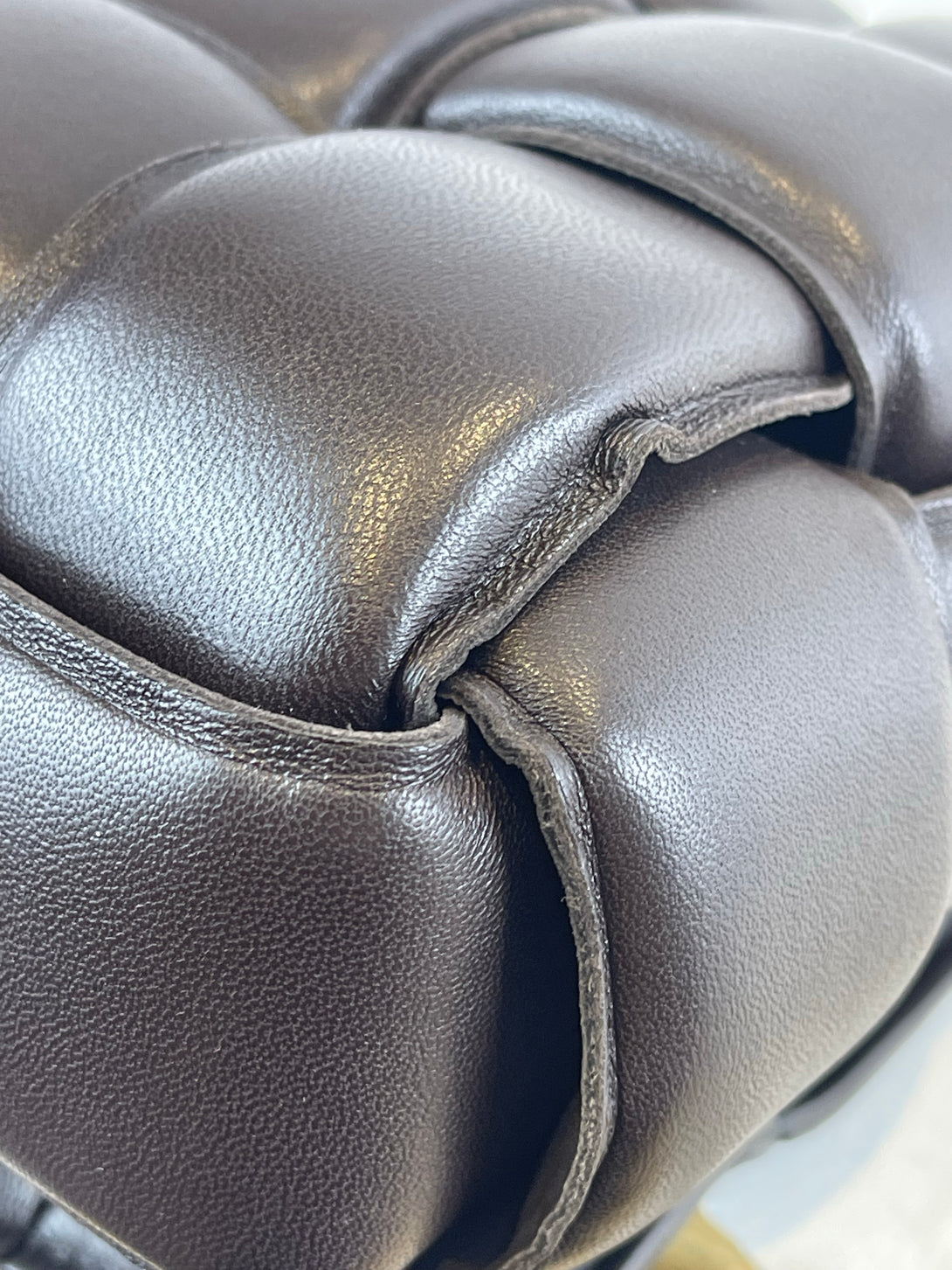 Bottega Veneta Dark Brown Padded intreccio leather "Cassette" Chain Crossbody