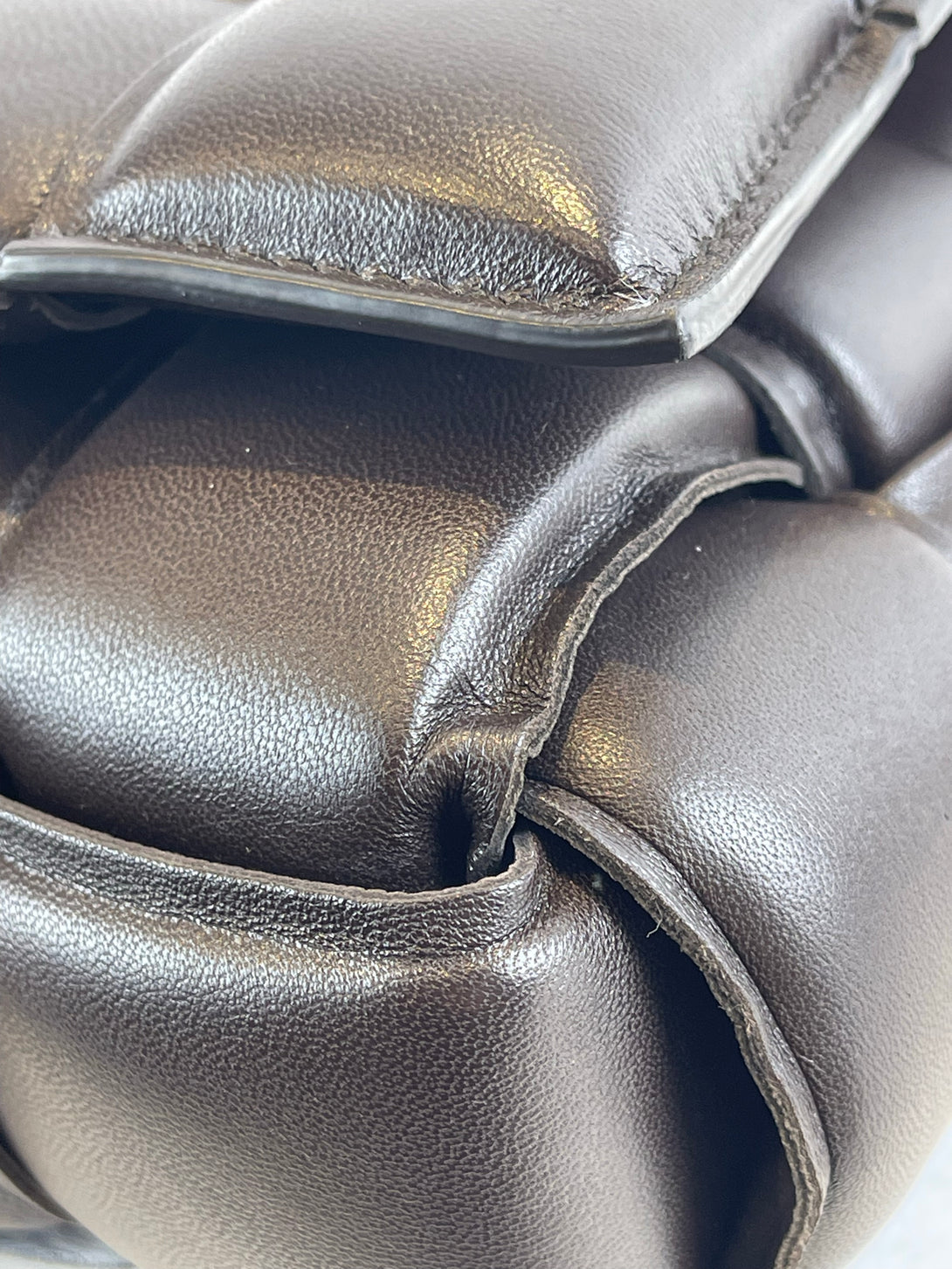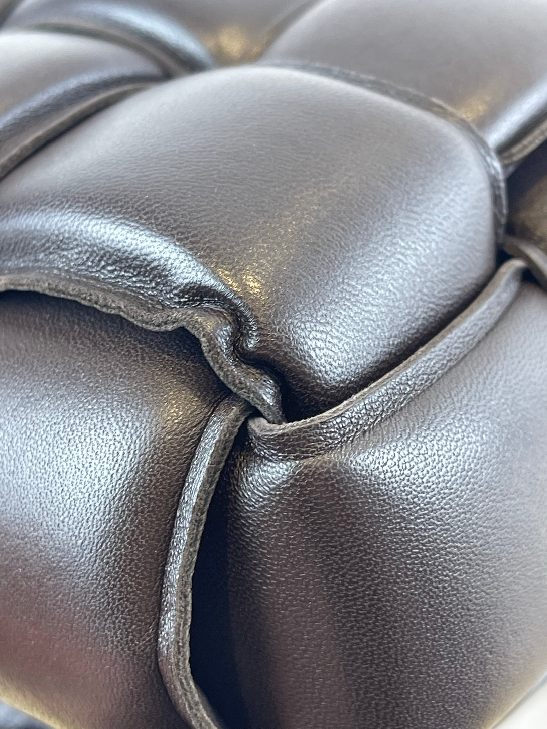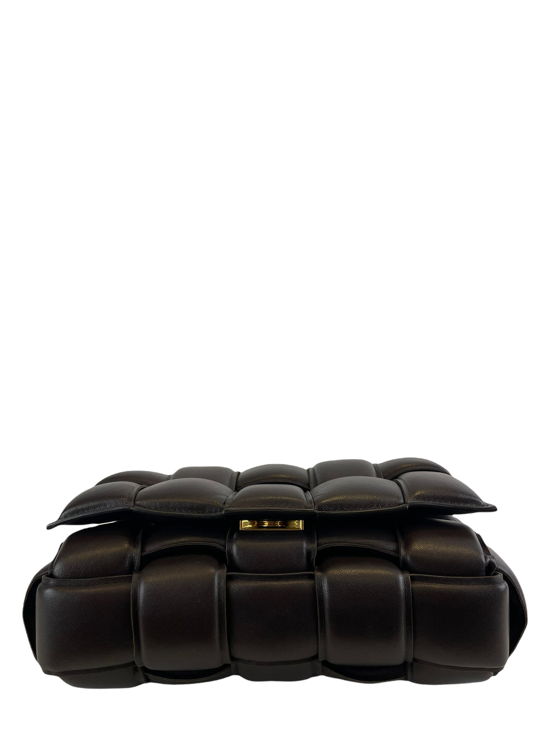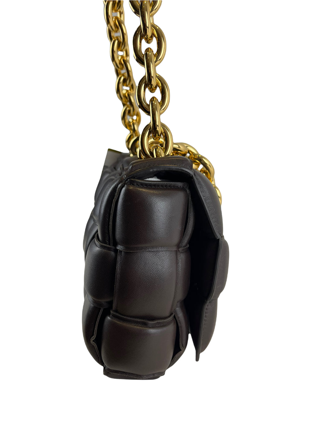 Bottega Veneta Dark Brown Padded intreccio leather "Cassette" Chain Crossbody