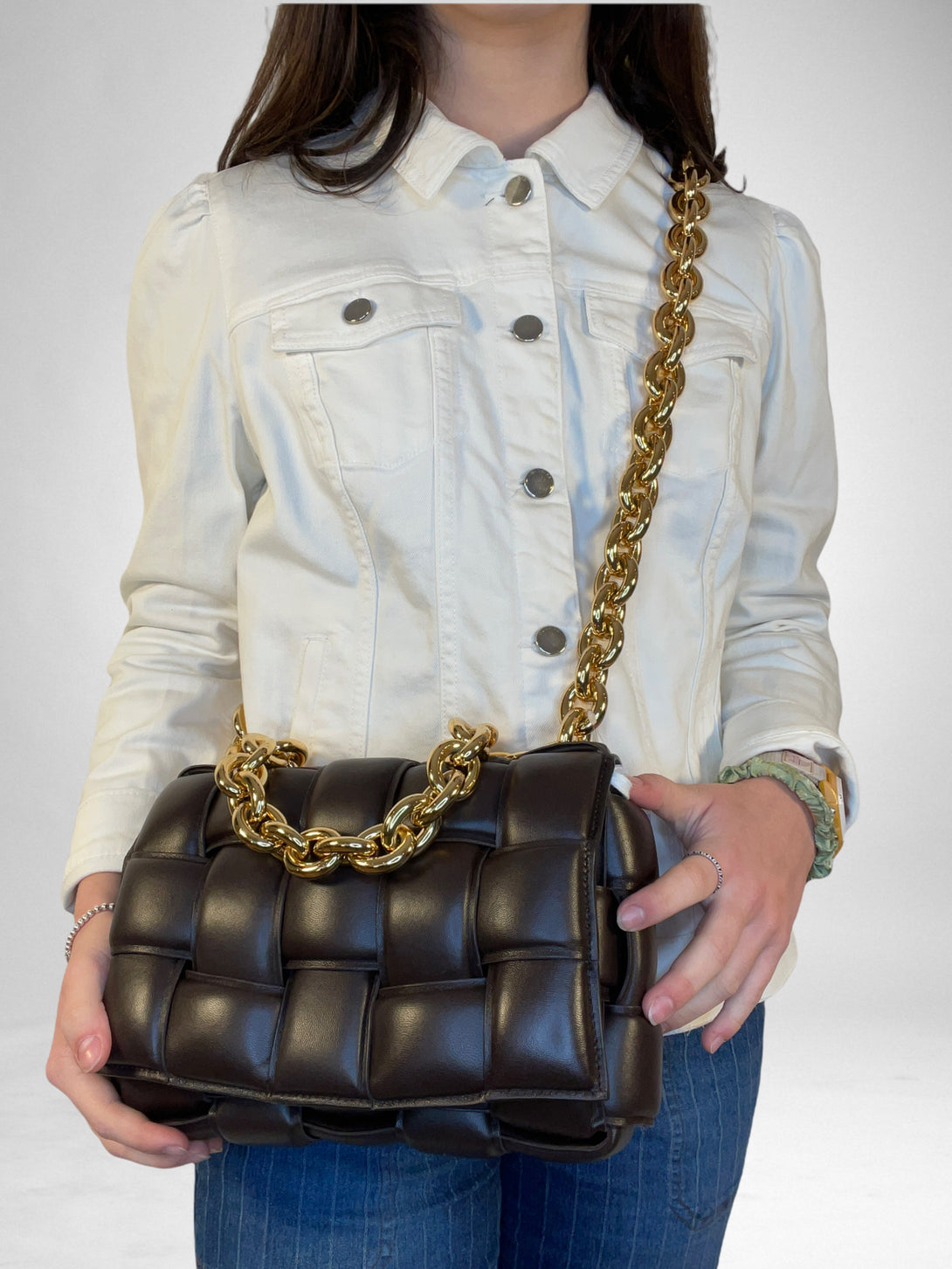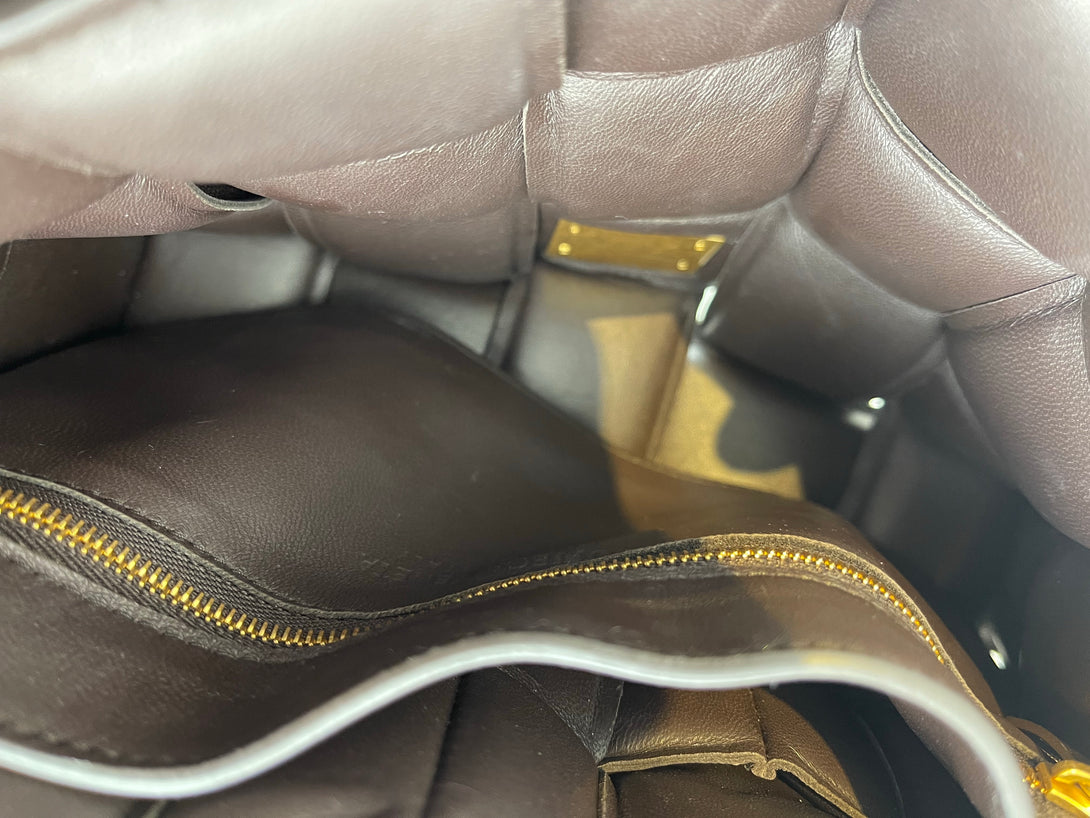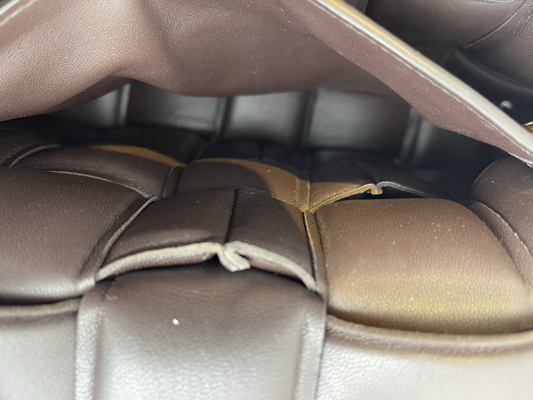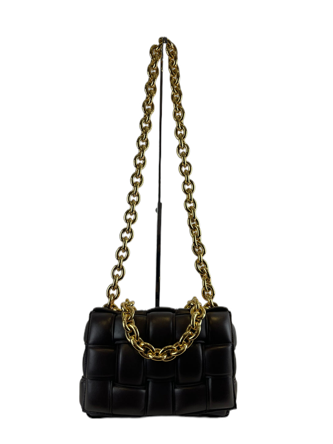 Bottega Veneta Dark Brown Padded intreccio leather "Cassette" Chain Crossbody