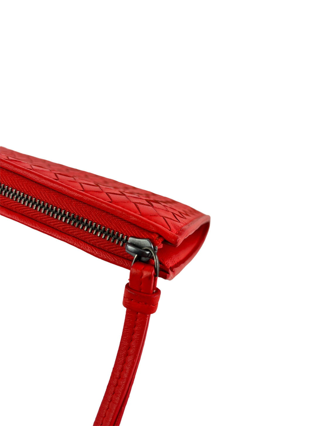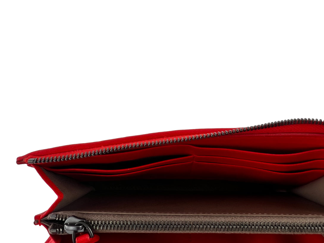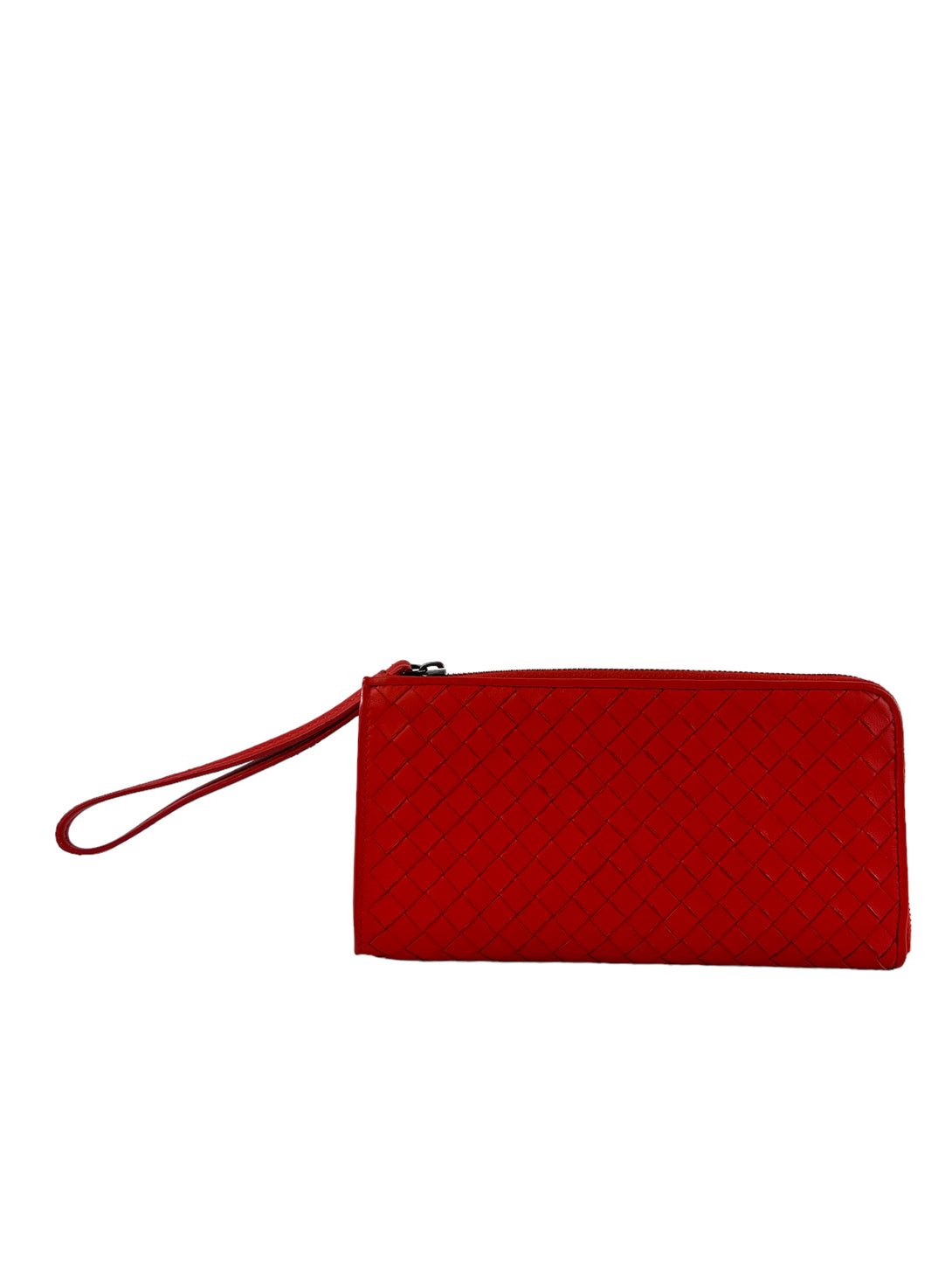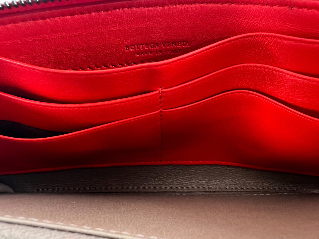 Bottega Coral Red Intrecciato Leather Zip Wallet