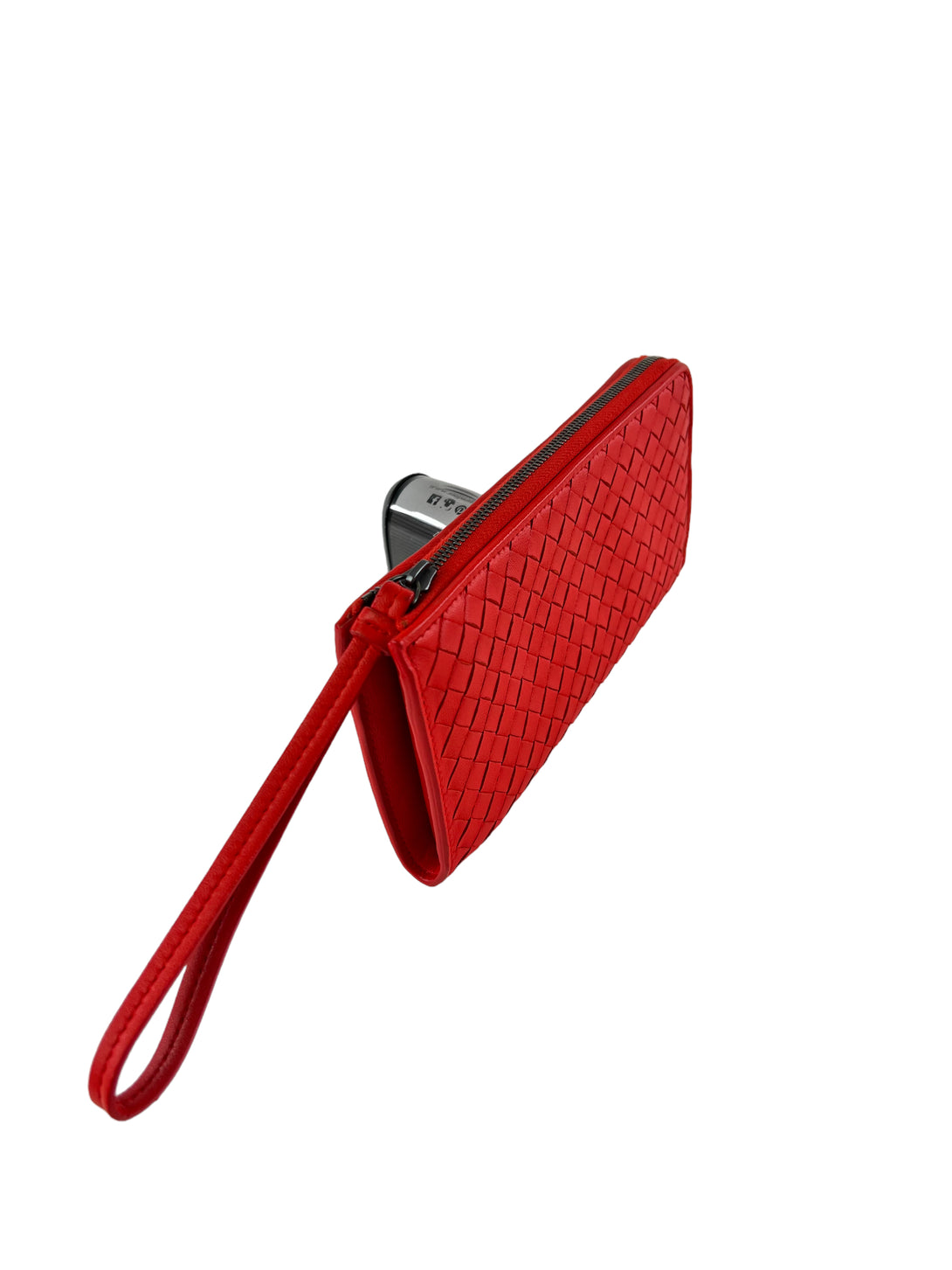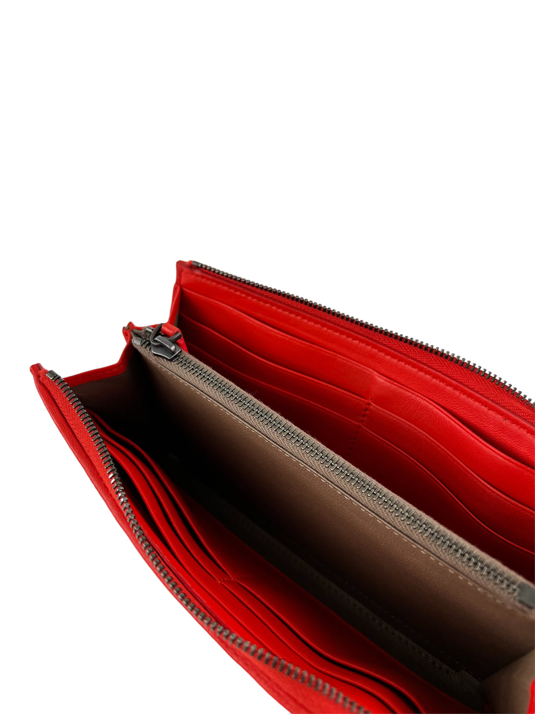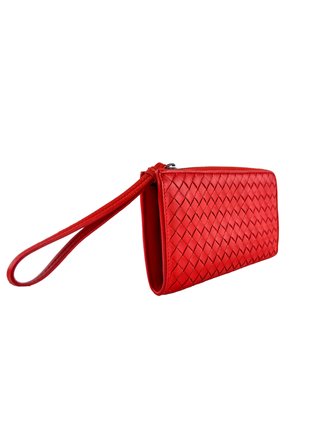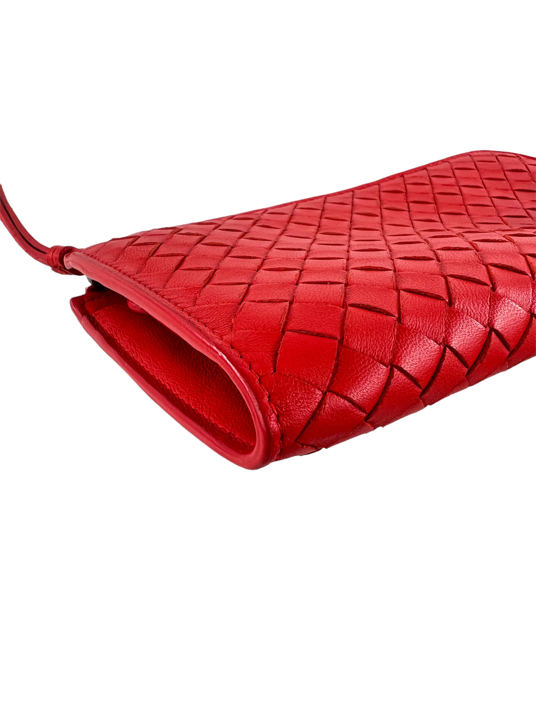 Bottega Coral Red Intrecciato Leather Zip Wallet