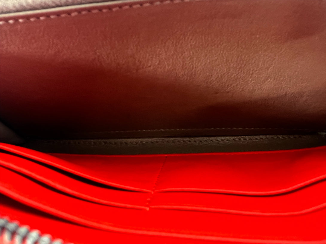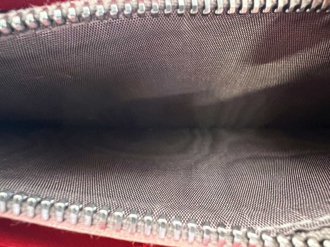Good: Items show more prominent wear such as noticeable discoloration, stains and snags to fabric. May have worn corners and handles, tarnishing to hardware and creasing to leather. Pen or make up marks may be visible in the interior of the bag.