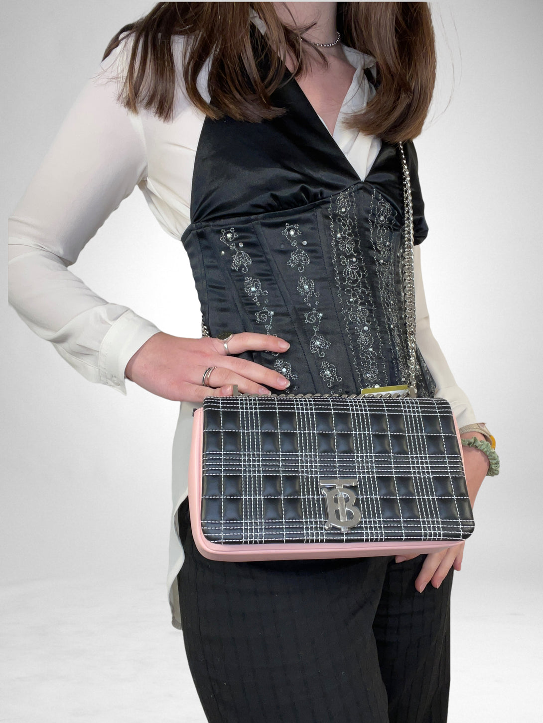Burberry Black and Pink Quilted Lambskin "Lola" Crossbody