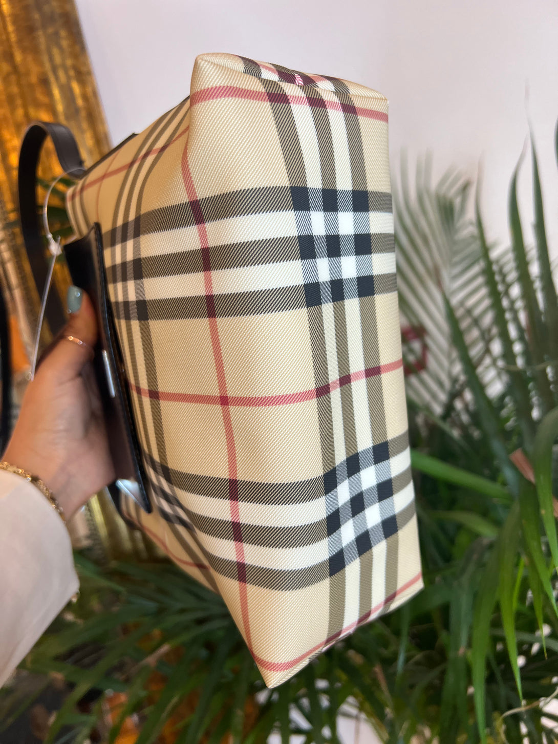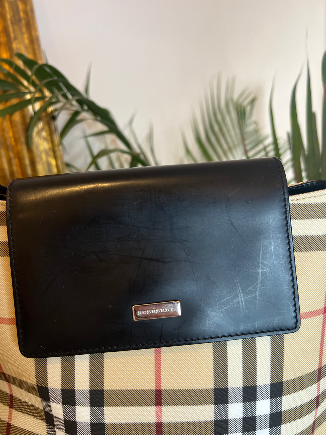 Burberry Checked Canvas & Leather Shoulder Bag