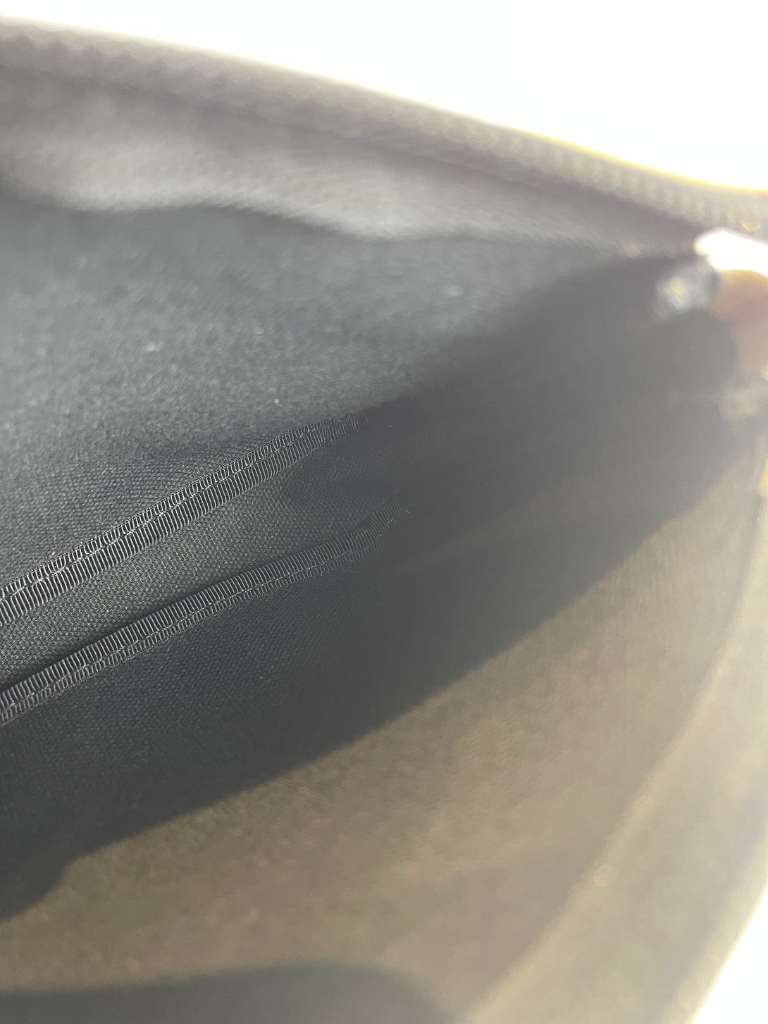 Good: Items show more prominent wear such as noticeable discoloration, stains and snags to fabric. May have worn corners and handles, tarnishing to hardware and creasing to leather. Pen or make up marks may be visible in the interior of the bag.