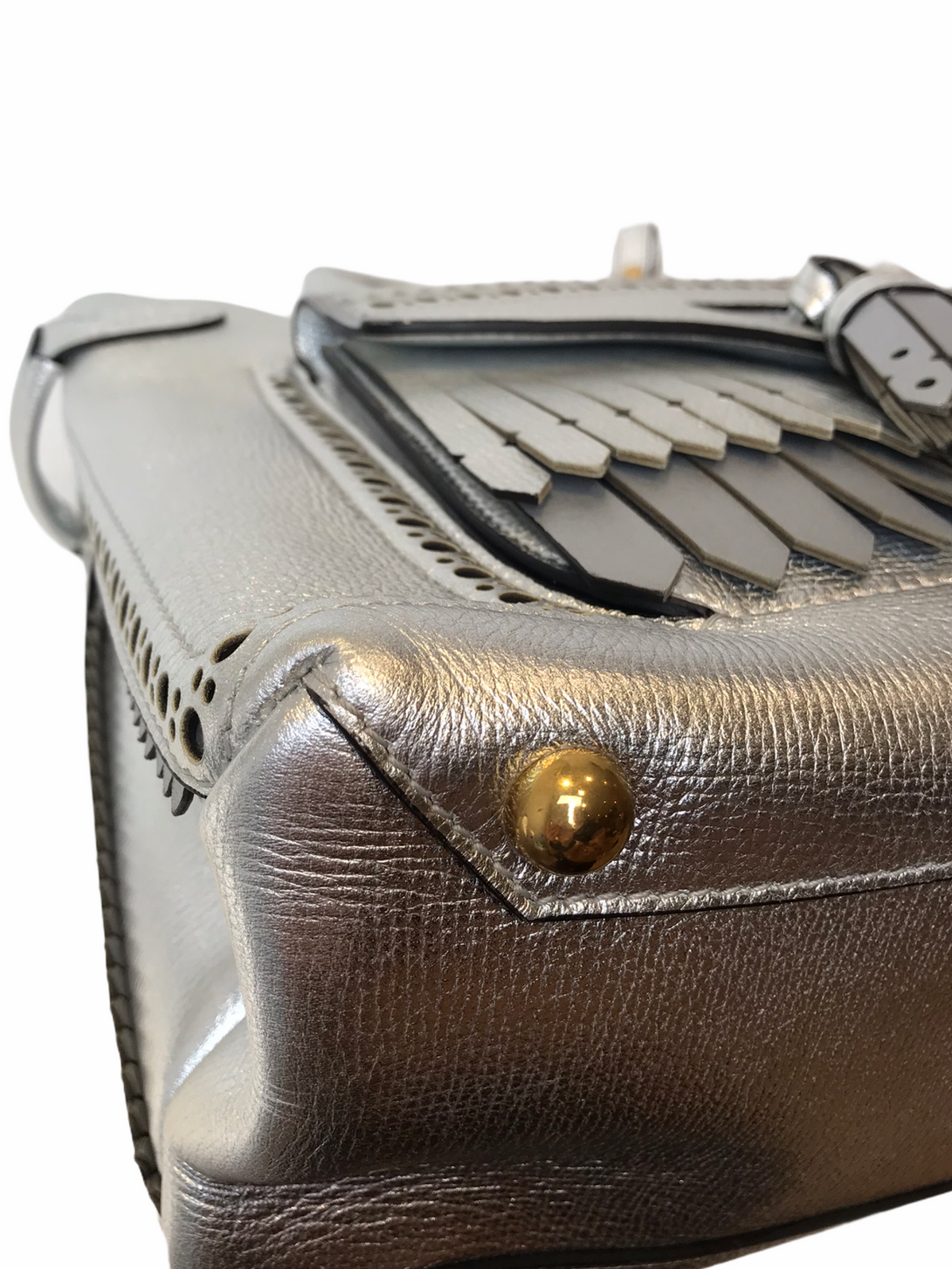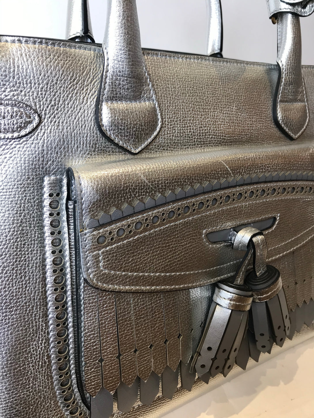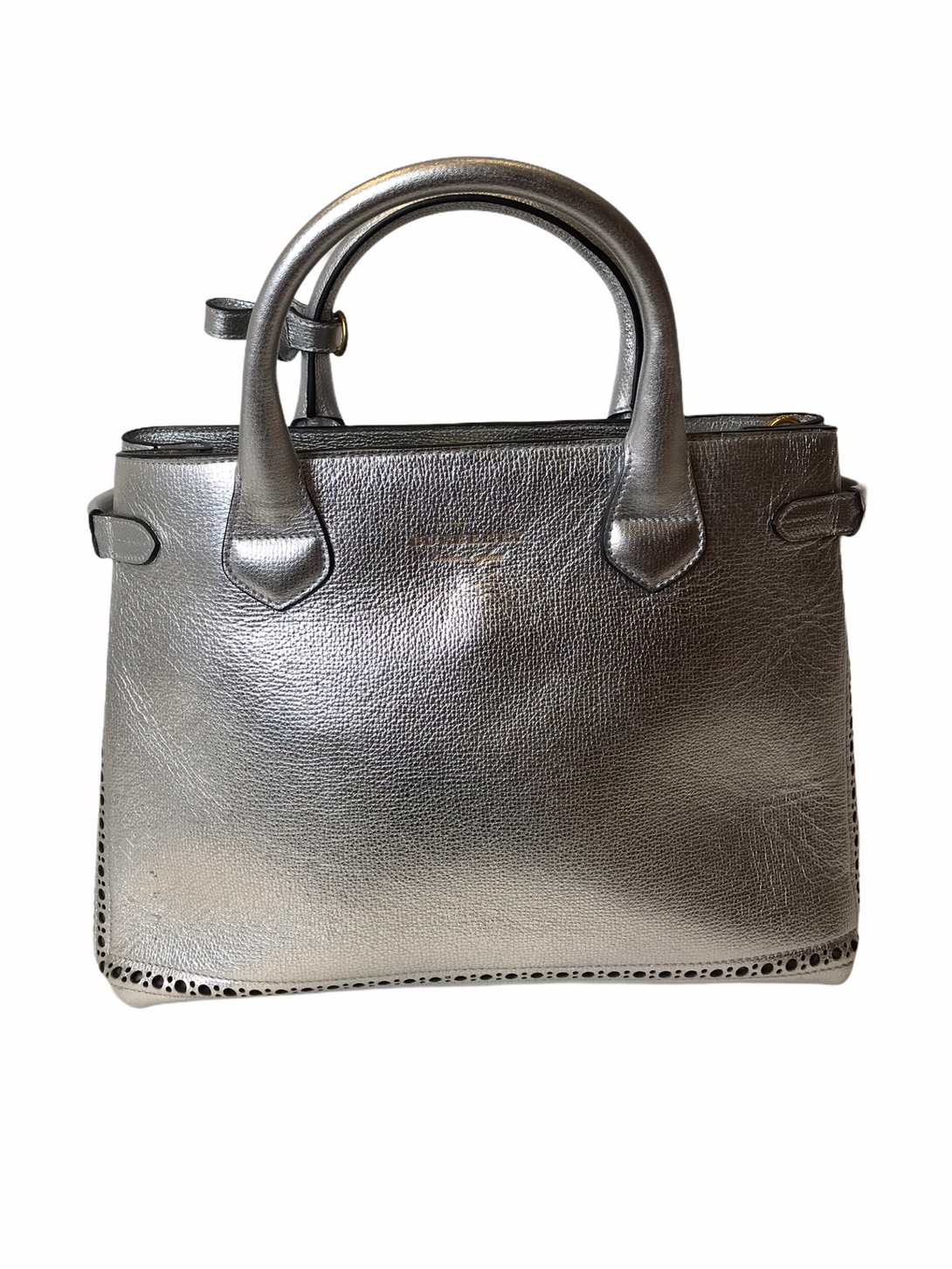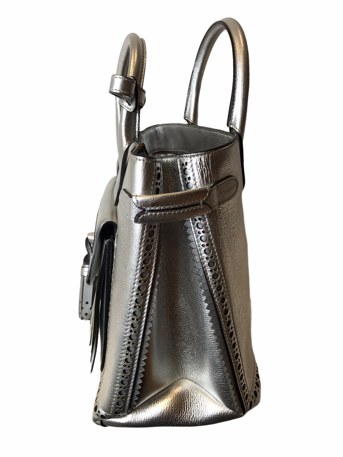 Burberry Silver Metallic Leather "Banner" Tote with Brogue Detailing - As Seen on Instagram 03/02/21