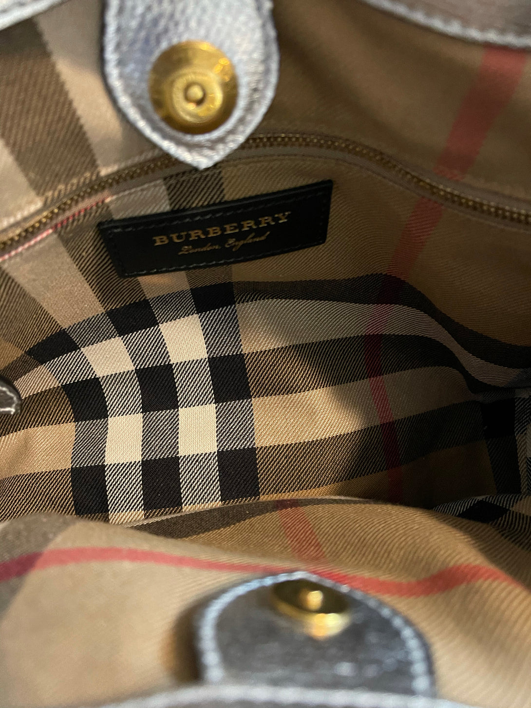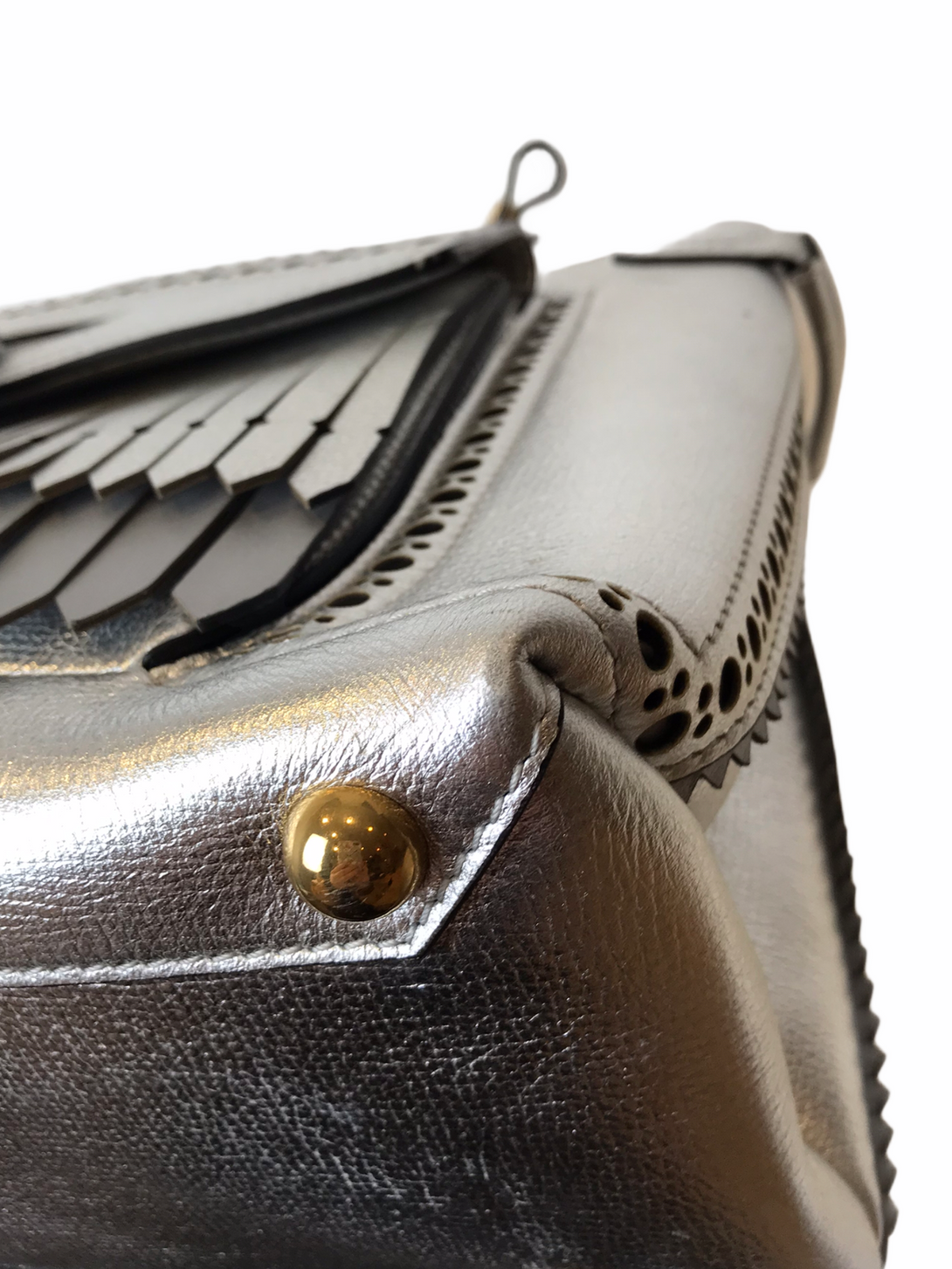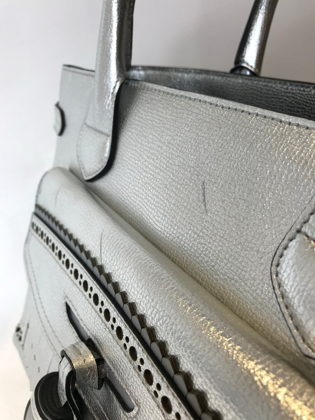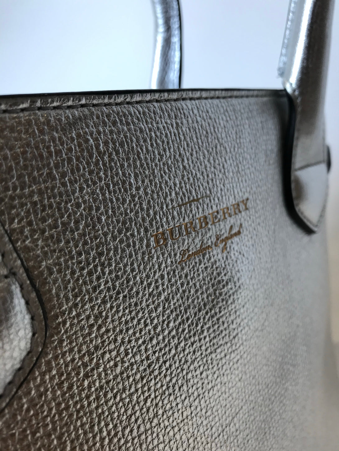 Burberry Silver Metallic Leather "Banner" Tote with Brogue Detailing - As Seen on Instagram 03/02/21