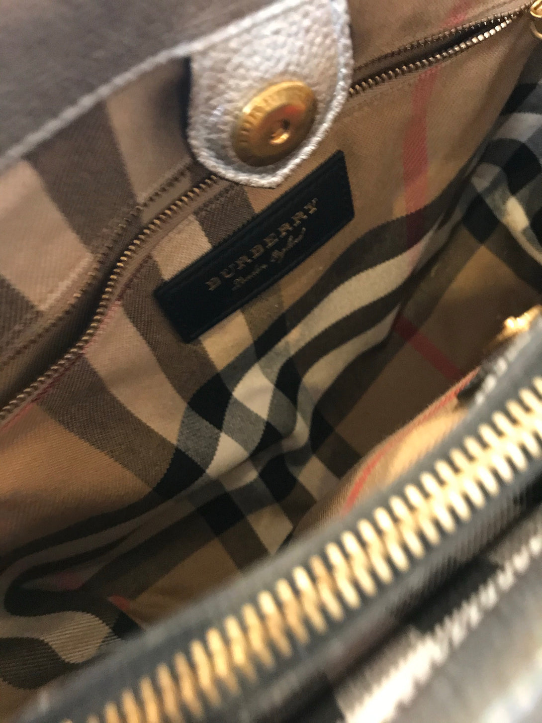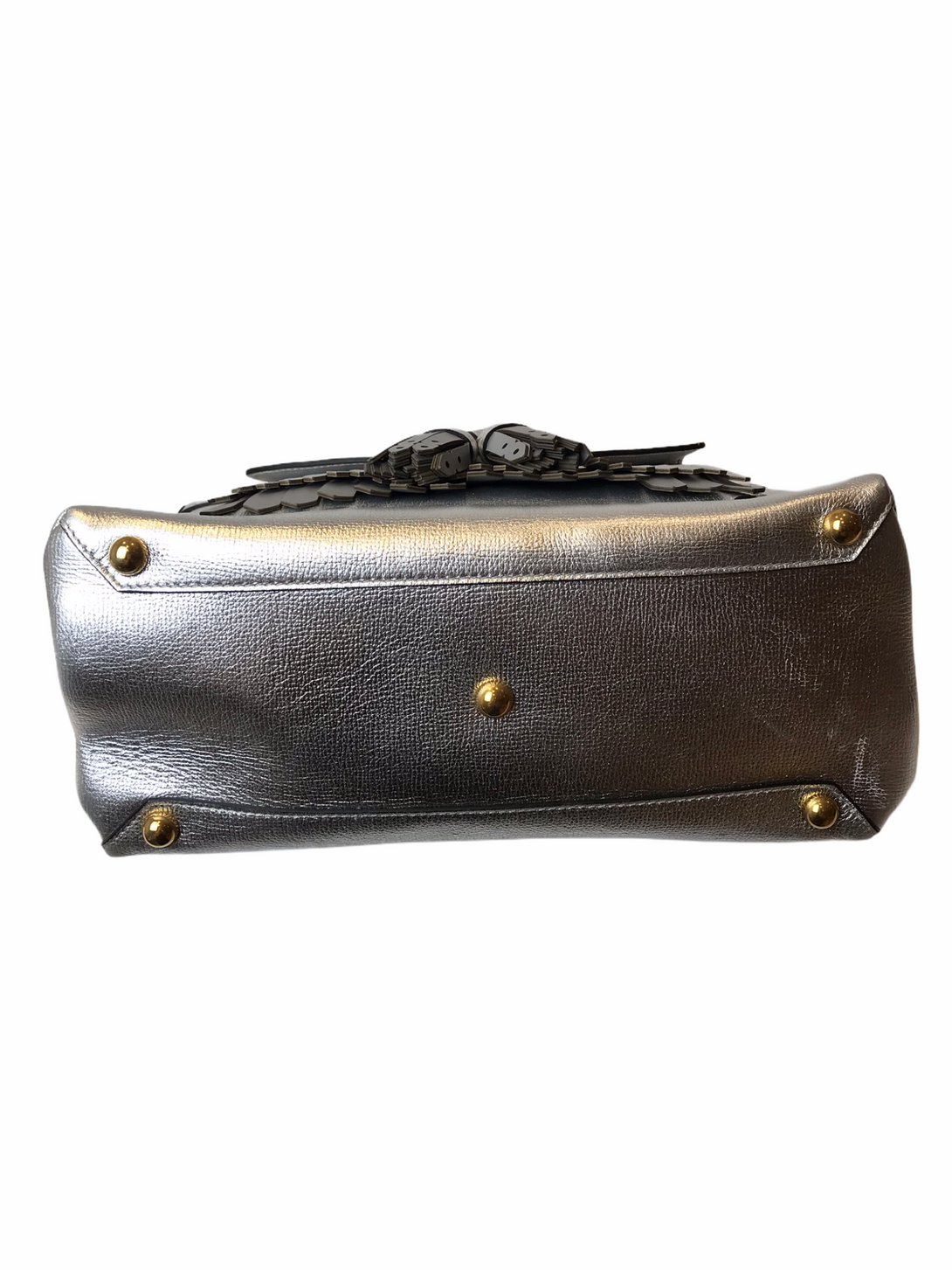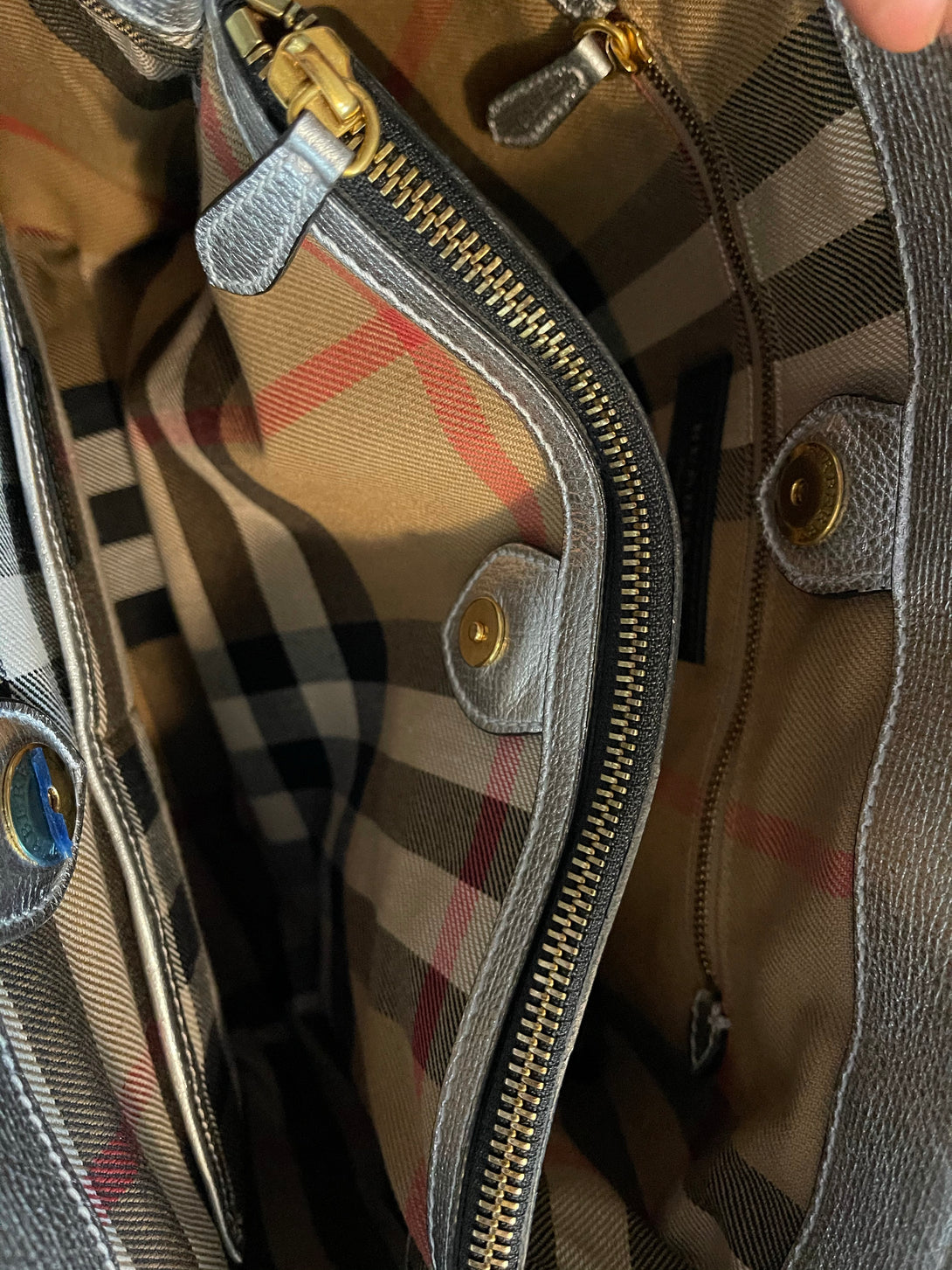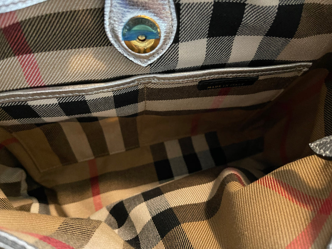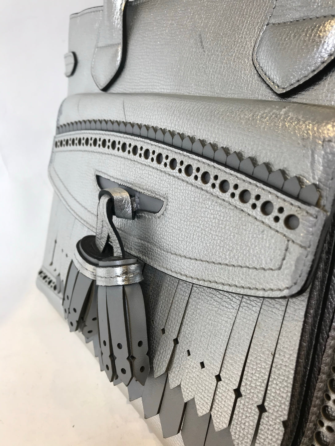 Burberry Silver Metallic Leather "Banner" Tote with Brogue Detailing - As Seen on Instagram 03/02/21