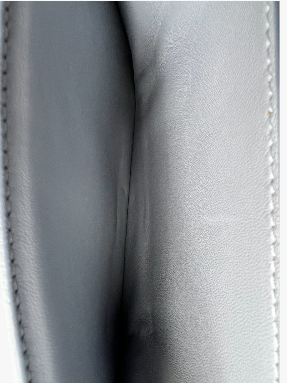 Good: Items show more prominent wear such as noticeable discoloration, stains and snags to fabric. May have worn corners and handles, tarnishing to hardware and creasing to leather. Pen or make up marks may be visible in the interior of the bag.