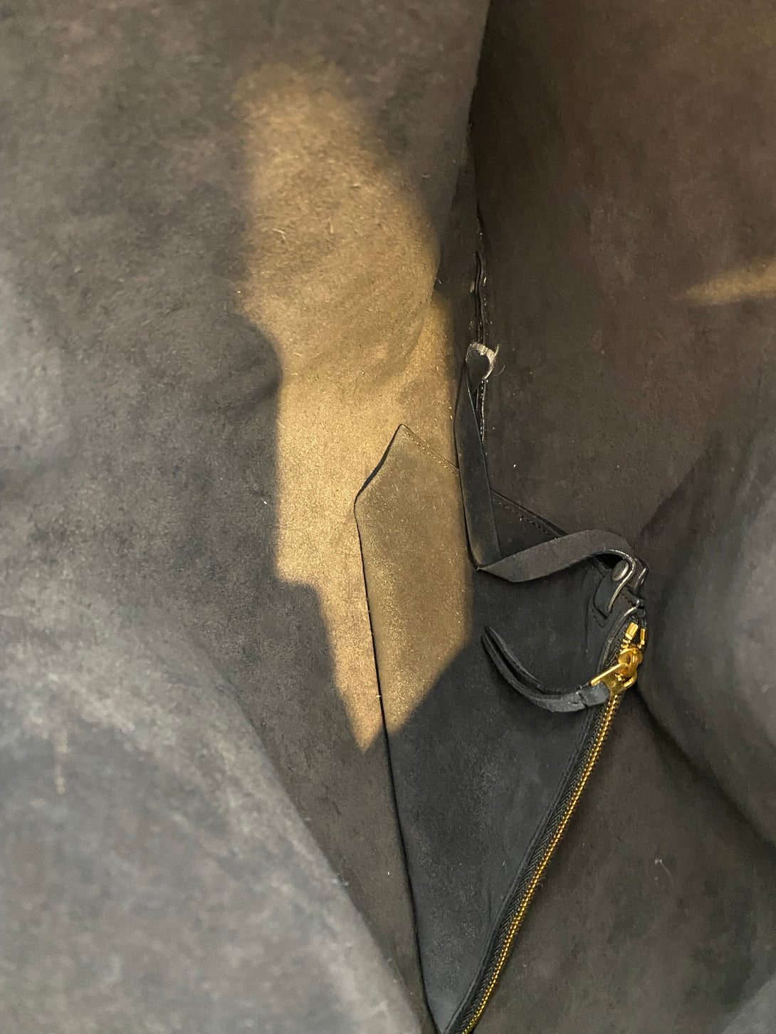 • Interior Condition:  Good Pre-Loved Condition - signs of wear on suede inside and pocket strap broken off as shown