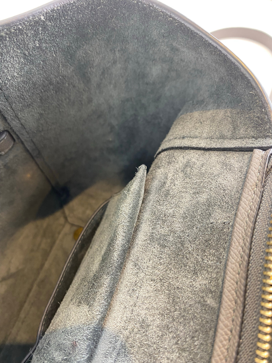 Fair: Very prominent wear, may have holes on corners, severe scuffs, piping of bag showing and pen marks to exterior. Interior may have pen or make up marks.