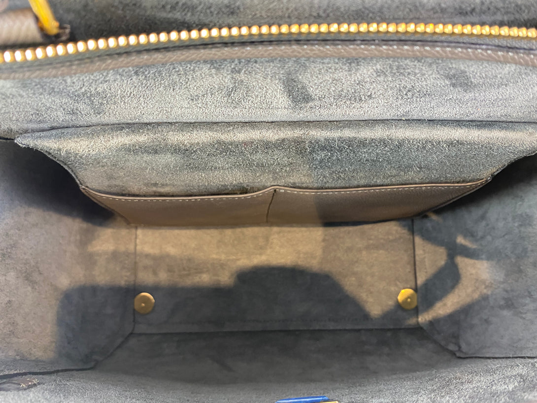 Good: Items show more prominent wear such as noticeable discoloration, stains and snags to fabric. May have worn corners and handles, tarnishing to hardware and creasing to leather. Pen or make up marks may be visible in the interior of the bag.
