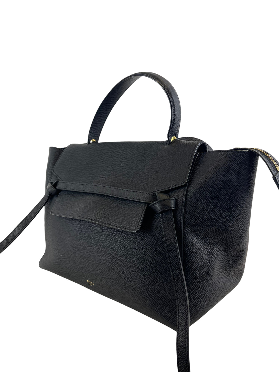 Celine Medium Black Grained Leather "Belt" Bag